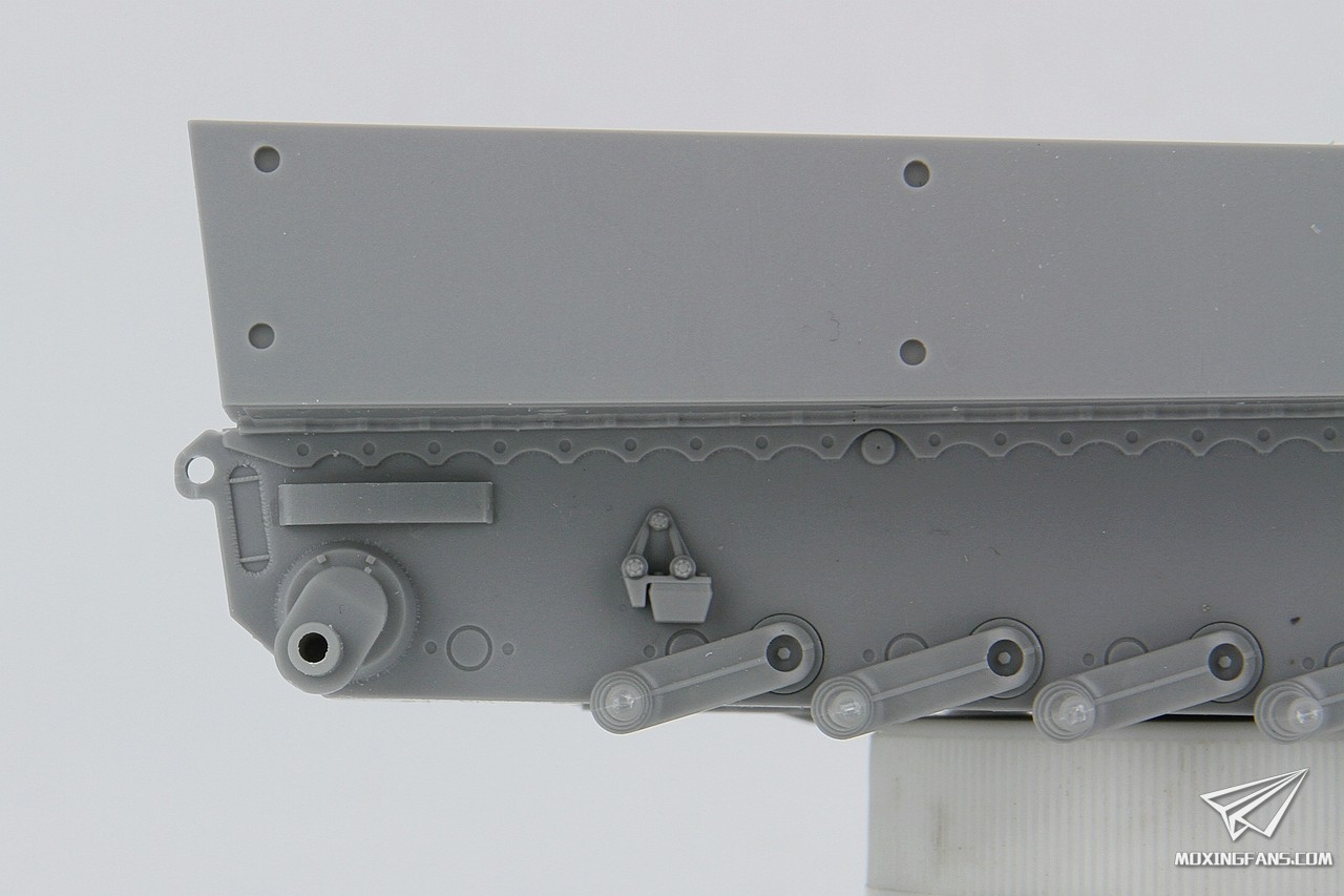 ▼ 车体两侧的装甲板为独立开模,单独粘接到车体上面的,防磁很细腻。
