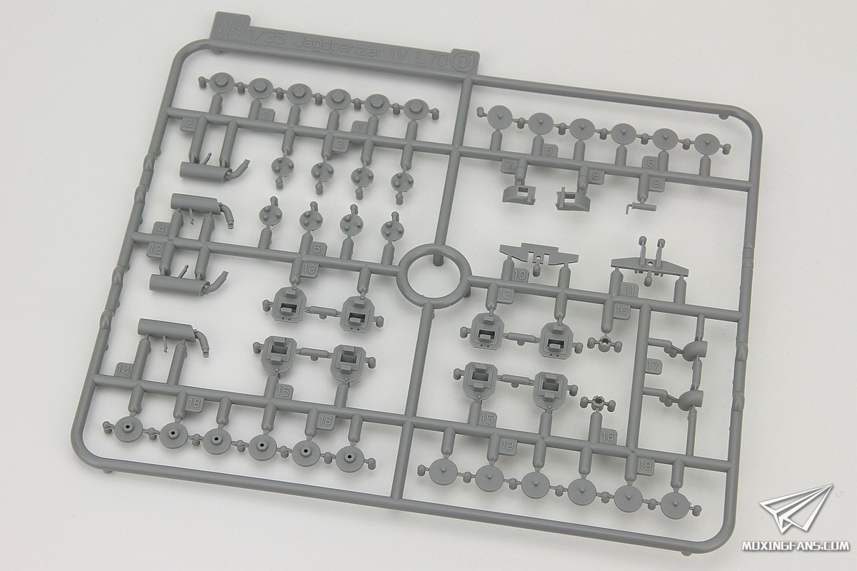 ▼ A板*2,为悬挂,路轮,主动轮,托带轮等零件。值得一提的是,包括导线轮等零件威龙都给出了多种样式可选,在这盒套件中会看到很多类似的情况。