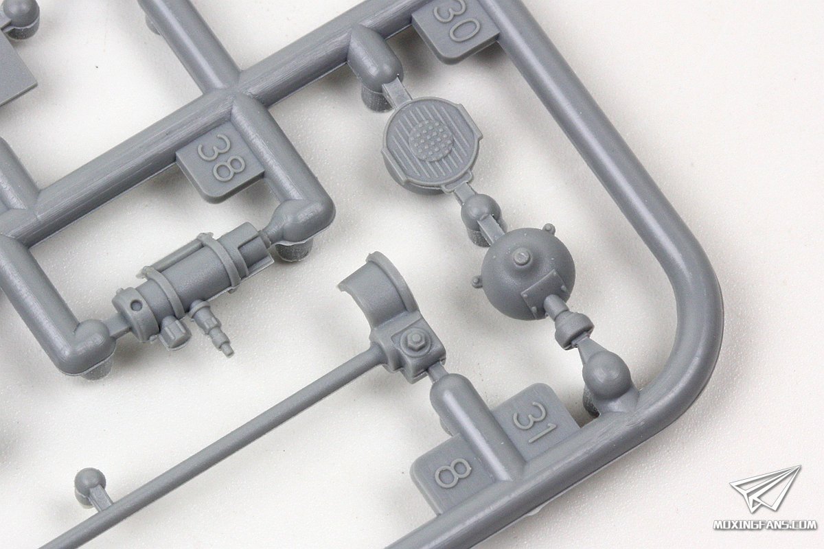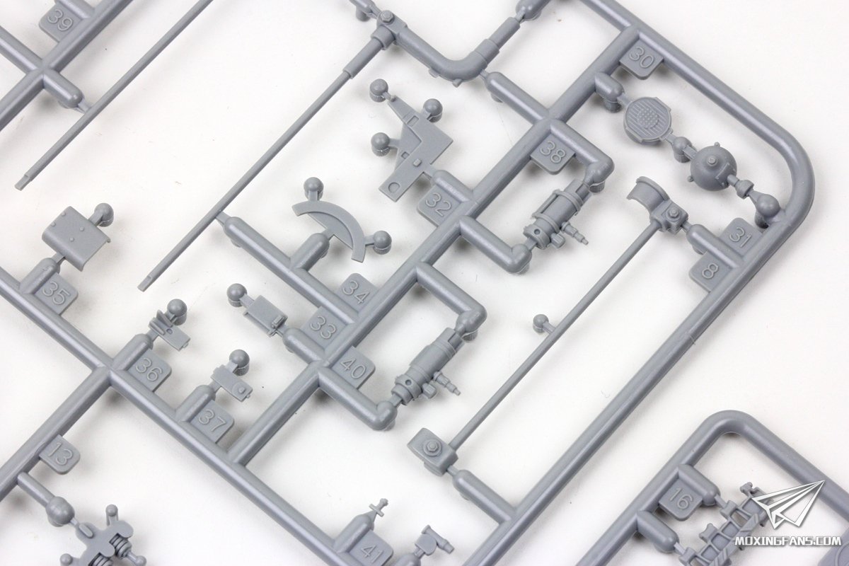 ▼ 细节方面中规中矩,并不十分出色,从零件的分布来看更像是从以前的251半履带车等附带夜视仪的车辆上转移下来到板件上修模而成的。红外线大灯等零件都是使用了射出件来表现而非透明件,表现力打了折扣,而且小零件上的合模线比较明显,需要修整。