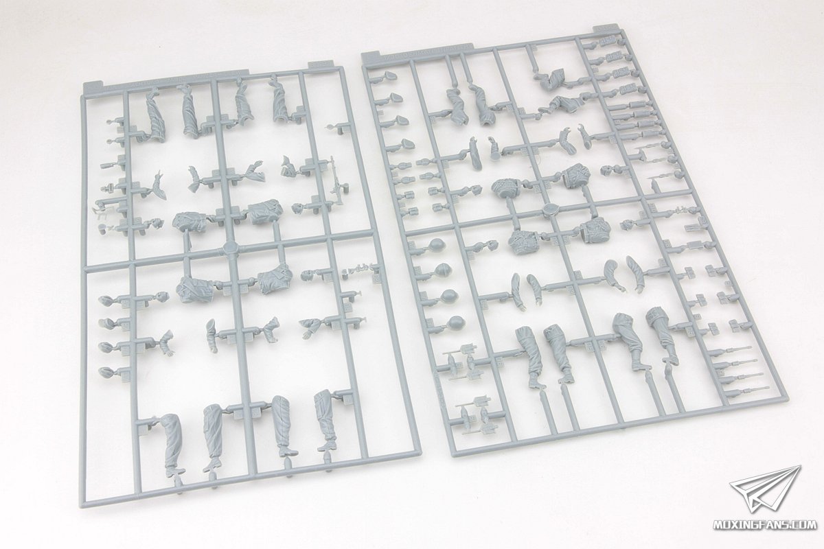 ▼ 从板件来说,这盒套件应该属于6465和6311的合体版本,但是阉割了大部分蚀刻片。作为首发版本,套件中包含了蚀刻片,金属炮管,魔术履带,DS履带,透明件,金属钢缆, 2套兵人,可选择制作附带防磁装甲的象式或不带防磁装甲的象式。