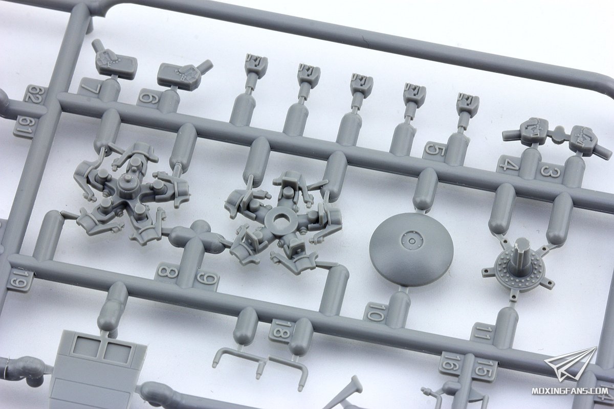 ▼ 首先来看机身的开模情况,为传统的左右两片式开模,刻线偏细,开出了全机的铆钉效果,较为锐利。因为型号众多,所以这盒套件中给出了不少的通用件,制作时并未用到。主旋翼根据说明书指示,可以制作成收起的状态,能够大幅降低占地面积,我等蜗居党最爱。