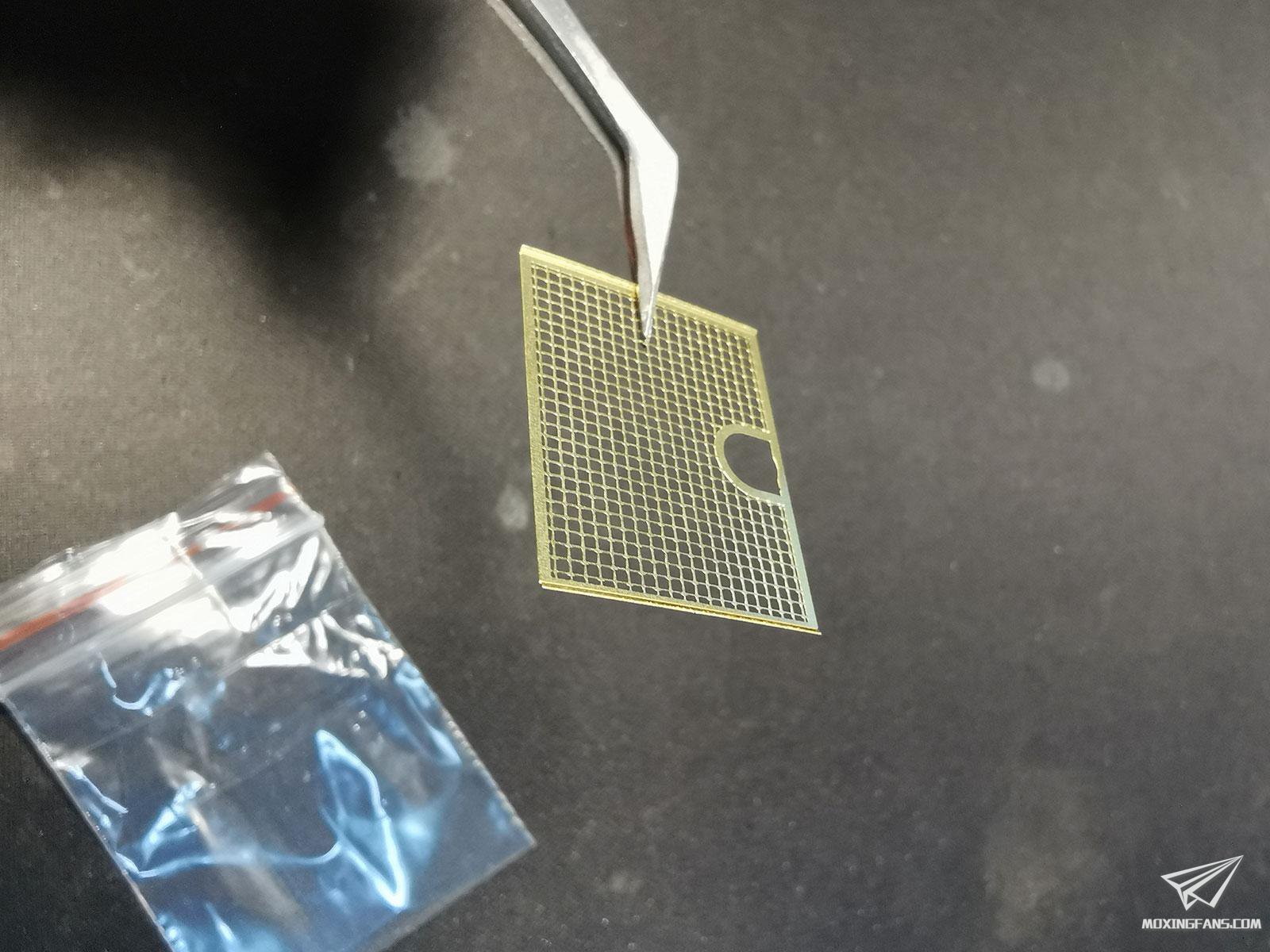 蚀刻片的里侧有一个契合散热窗零件的弯折。