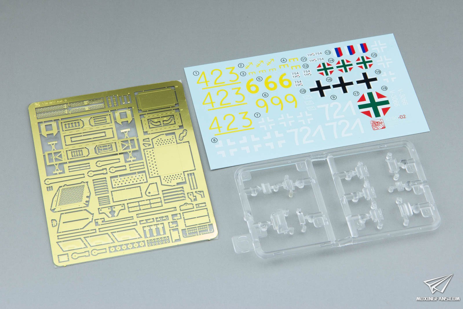 大战中德国人对缴获的装备可谓物尽其用,在其基础上曾经推出过多款魔改非常成功的型号,而原产于捷克斯洛伐克斯柯达兵工厂的这款LT-38轻型坦克就是其中的代表作。1939年3月德国并吞捷克之后,缴获了大量LT-38,德国人经过一番评估之后发现这款坦克性能优良,遂将其命名为Sd.Kfz140 PZ.38(t)继续加入德军服役,一直到大战后期都能在战场上看到这款坦克的身影。威龙的38(t)系列也是其较为经典的一个系列产品,今天我们就来看一下这个系列的第一款38(t)G轻型坦克表现如何。 ▼ 这款产品于2007年开模,近期再版,不同于上次再版的一号系列,这次再版的板件为偏浅的灰色塑料,配置方面跟初版没有明显区别,蚀刻片、魔术履带和透明件齐全。