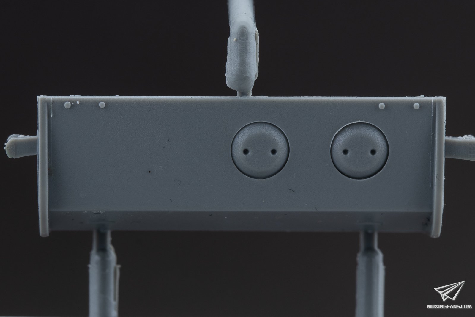 ▼ 轮子和悬挂等细节可以参考前几天发布的MD-002评测,小编这次只展示不同的部分。黄鼠狼2通用的上车体,翼子板为一体式开模。新开模的箱子和随车工具,工具扣已镂空。
