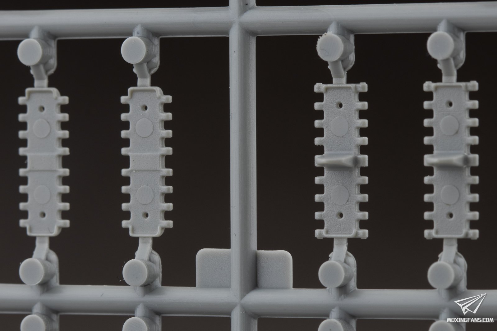 ▼ 上车体为一体式开模,装甲结合处开出了焊线细节,前部和后部的装甲板为单独开模,车尾侧面和顶部的格栅和防爆网提供的是射出件,并未提供蚀刻片零件。