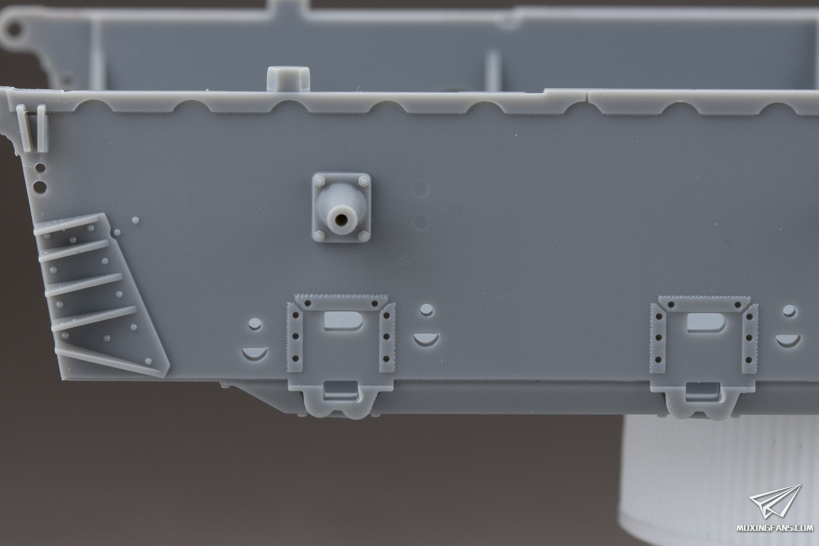 ▼ 上车体及主要零件的细节,基本延续了下车体的细节水平,焊线及螺栓的细节较为丰富,侧裙为塑料材质一体式开出。