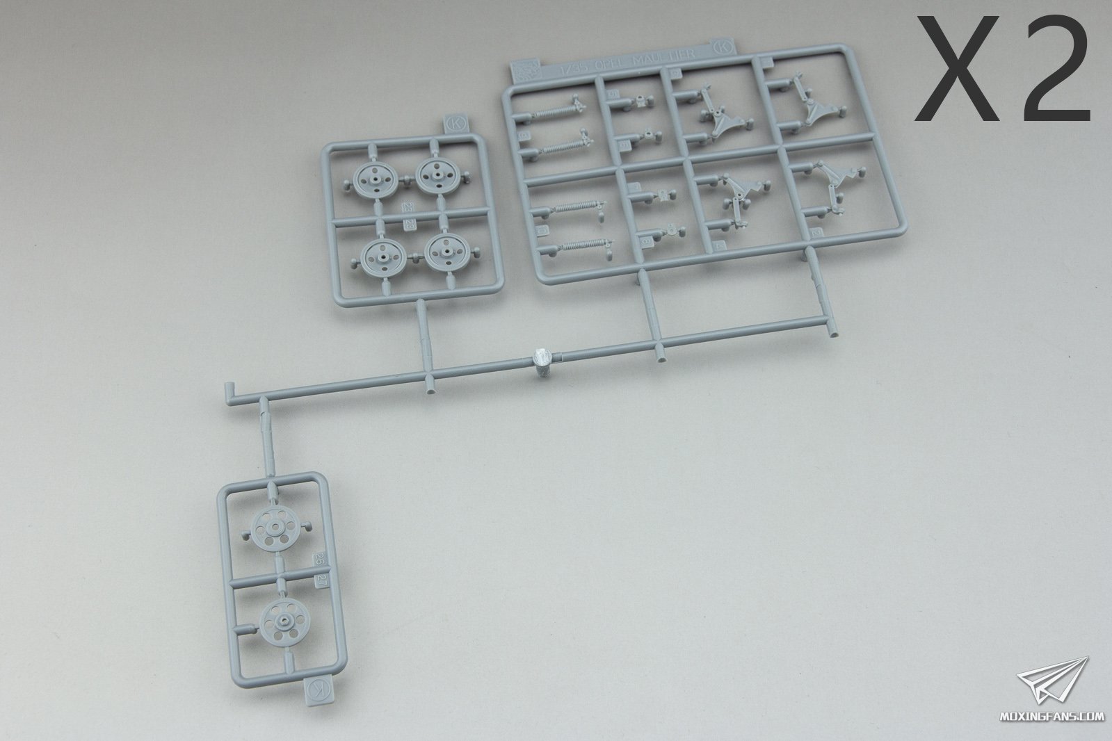▼ 在推出骡子半履带车之后的第二年,威龙顺势于2013年推出了这款骡子半履带救护车。这盒套件以6761为基础,新开了车厢部分,增加了不少零件。此次再版在配置方面不但附带了初版的蚀刻片和魔术履带,而且还增加了一组兵人,配置有所提升。