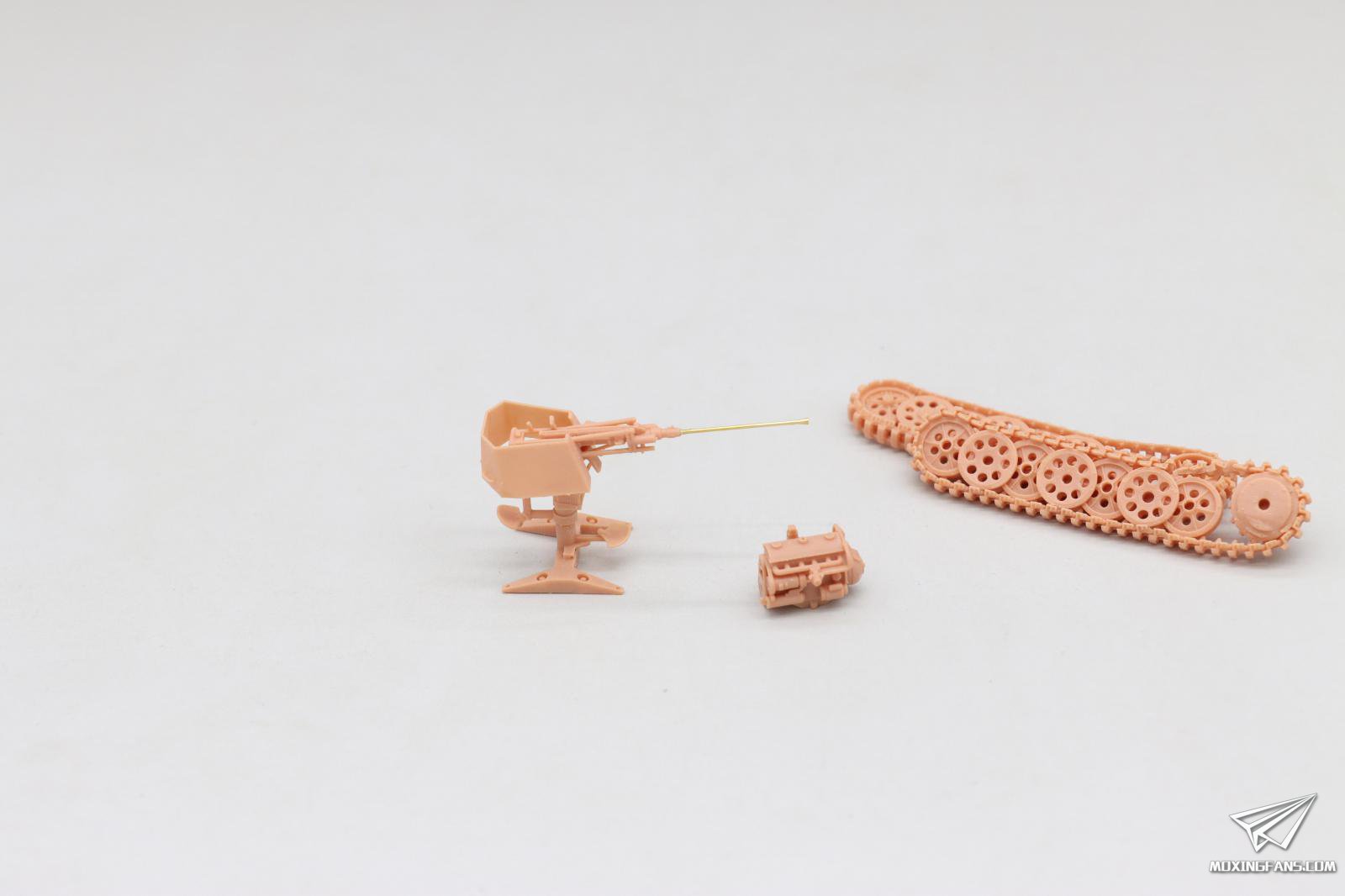 72比例的零件不多,识别度高的大零件剪下来慢慢处理,然后一次性粘合可以大大提高安装效率。 行走部分还是很耐看的,不得不说,威龙原车的底子就很好。