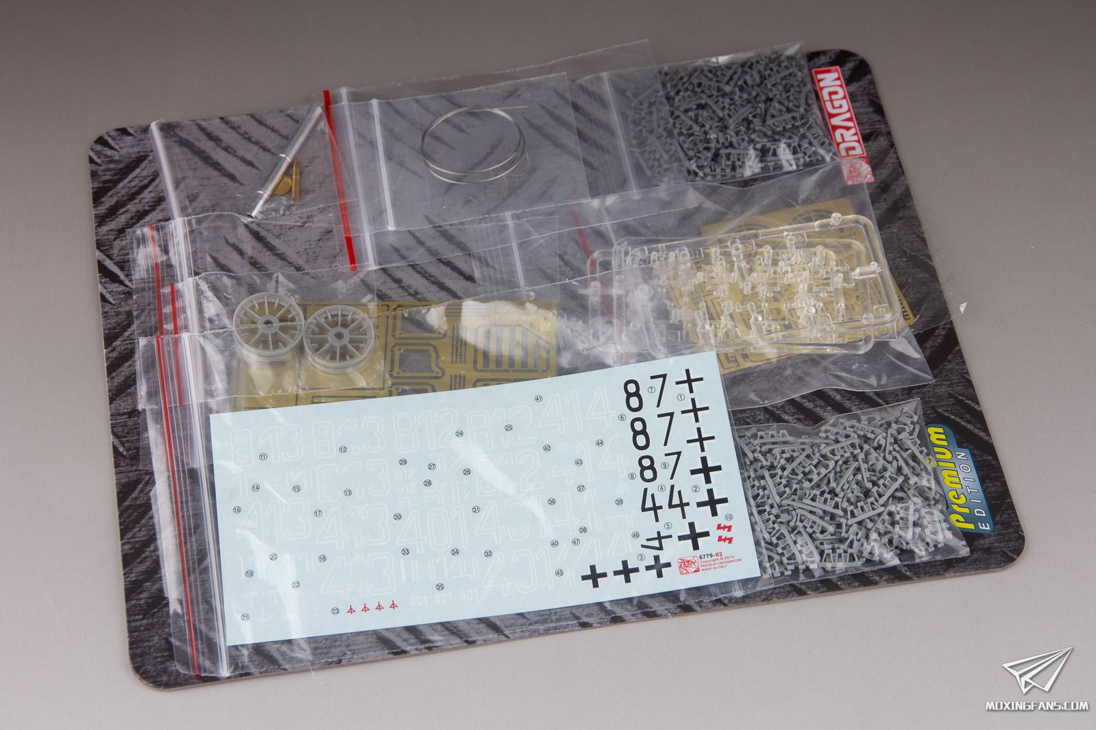 从2006年开始,威龙推出了经典的SK系列,同时还推出了让模友们津津乐道的精装版(PREMIUN EDITION)系列模型。不同于SK系列,精装版一般都是在现有套件的基础上增加大量蚀刻片、铝制金属炮管等部件重新包装而成的,基本不再需要第三方补品,从配置上来说可谓一步到位。因为加入了大量蚀刻片,精装版系列产品大部分对素组的要求相对比较高,针对的是中高阶玩家。 ▼ 这盒套件是威龙近期推出的新品,隶属于威龙的精装版系列,板件和配置和之前再版的6265非常接近,但是又重新加入了标志性的黑卡背衬包装。威龙的黑卡指的是一张黑色背景的硬卡纸,魔术履带、蚀刻片等补品都用不干胶贴纸粘在上面,既可以防止在运输过程中被挤压损坏,又显得非常规整,方面模友们整理盘点。在威龙早期的重要产品中黑卡较为常见,但是在后期产品中威龙逐渐取消了黑卡的配置,这也让黑卡成为了威龙早期产品的代名词,一说自己的堆积是黑卡版,就意味着最高品质的初版。