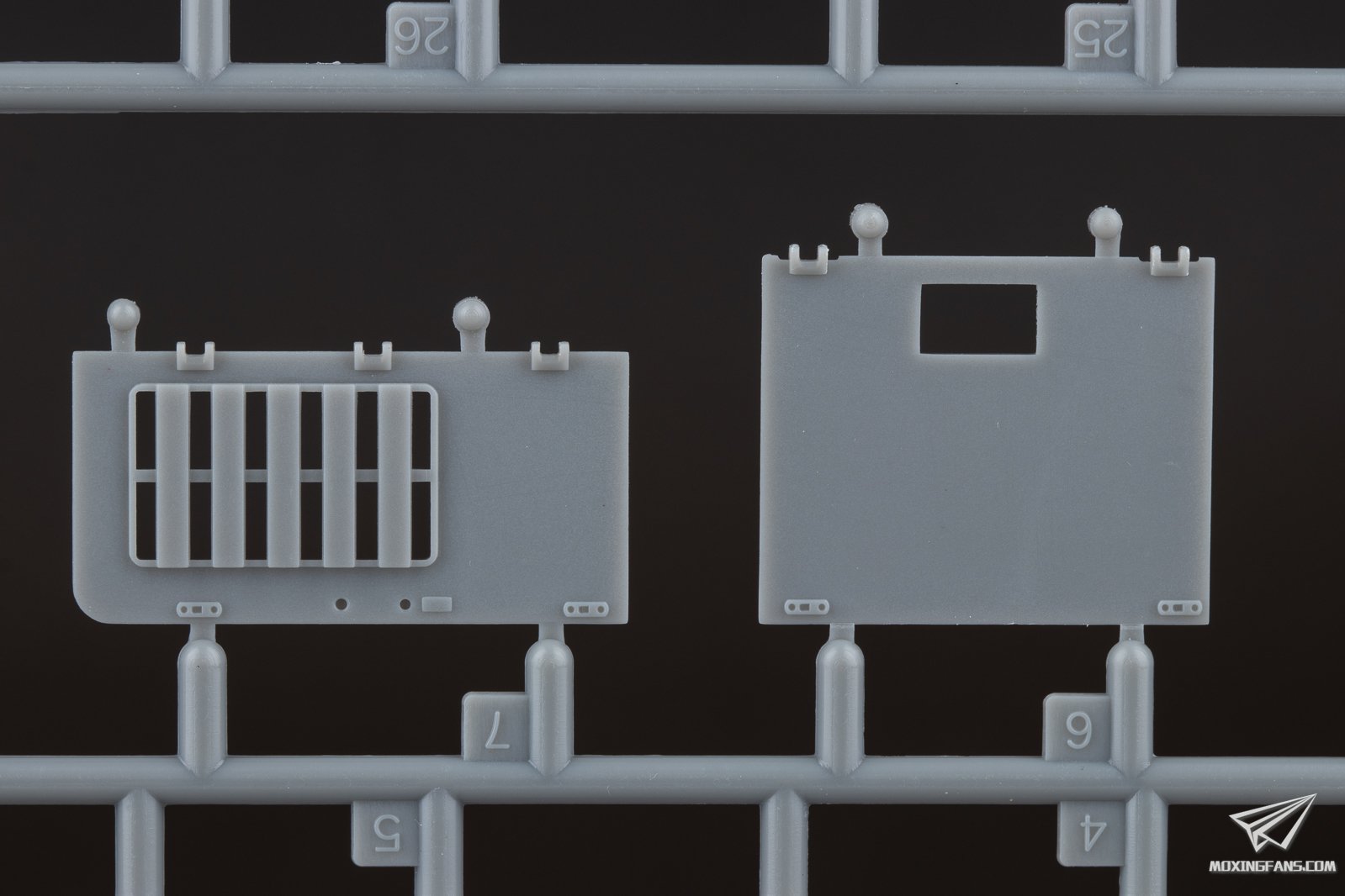 ▼ 下车体为重装甲型特有的零件,车体侧面使用额外的装甲进行了加强,细节也丰富了许多。 ▼ 上车体及主要装甲零件的细节。车常见的四号D不同,这盒套件给出了车体侧面、车体正面、驾驶员和机电员前方的加强装甲,防御力高于一般的四号坦克,细节也更加丰富一些。 共 6 页 <123456>