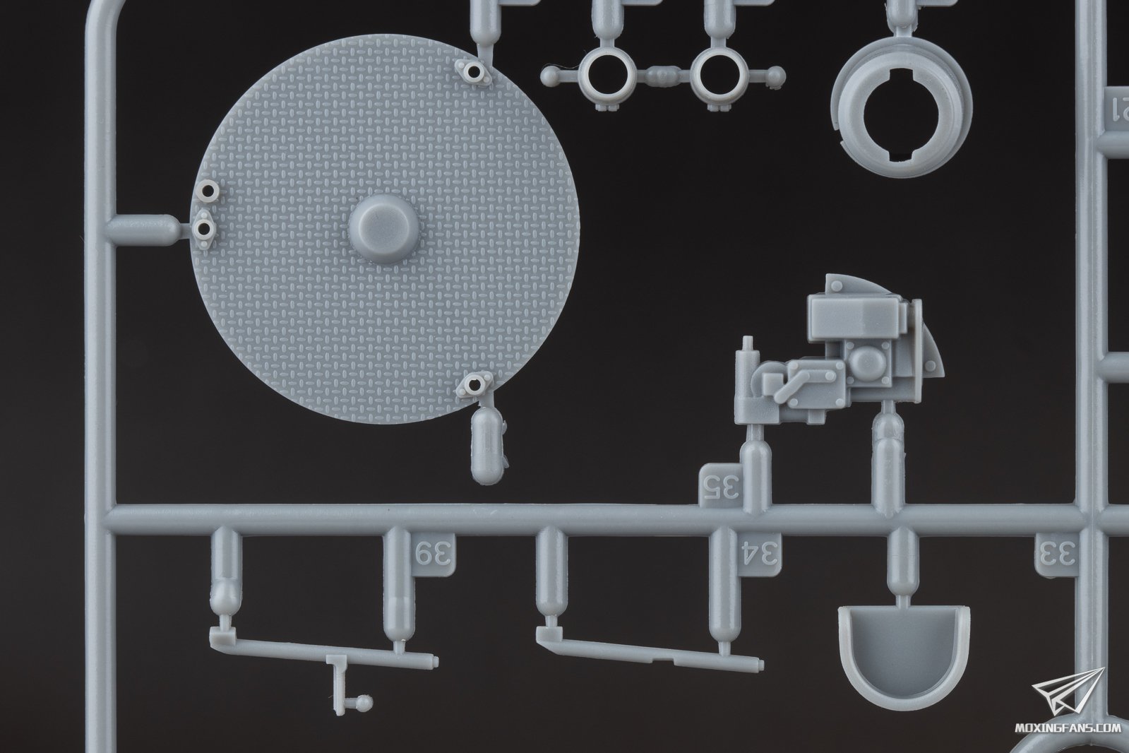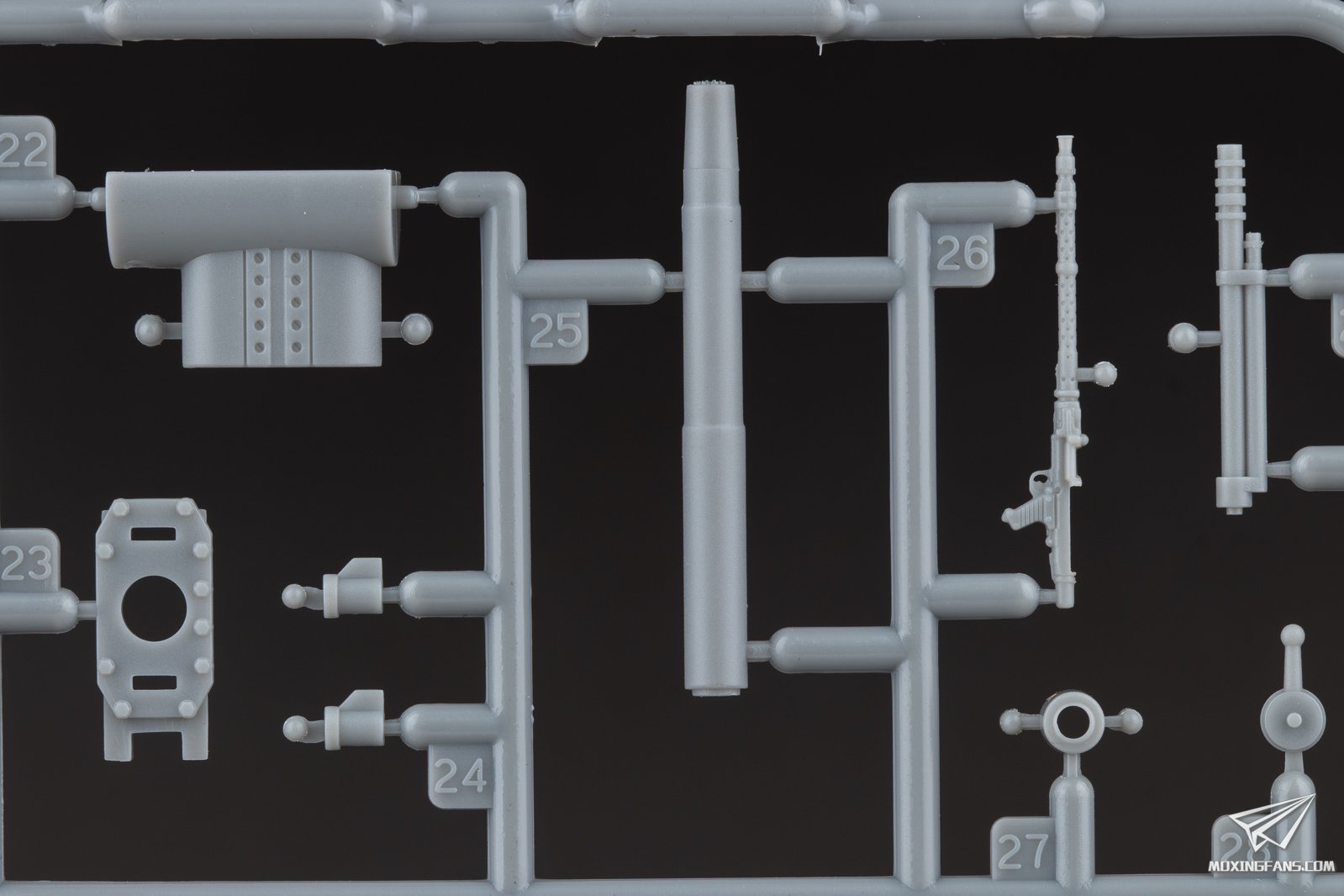▼ 炮塔主体为一体式开模,顶部开出了朝向不同的一字埋头螺栓,各处的细小焊线细节也比较细腻。套件给出了部分炮塔内构,包括吊篮和炮尾结构,指挥塔为一体式开模,这盒重装甲型四号D还给出了炮塔前部的加强装甲零件,可制作成封绘上的样式。 共 6 页 <123456>