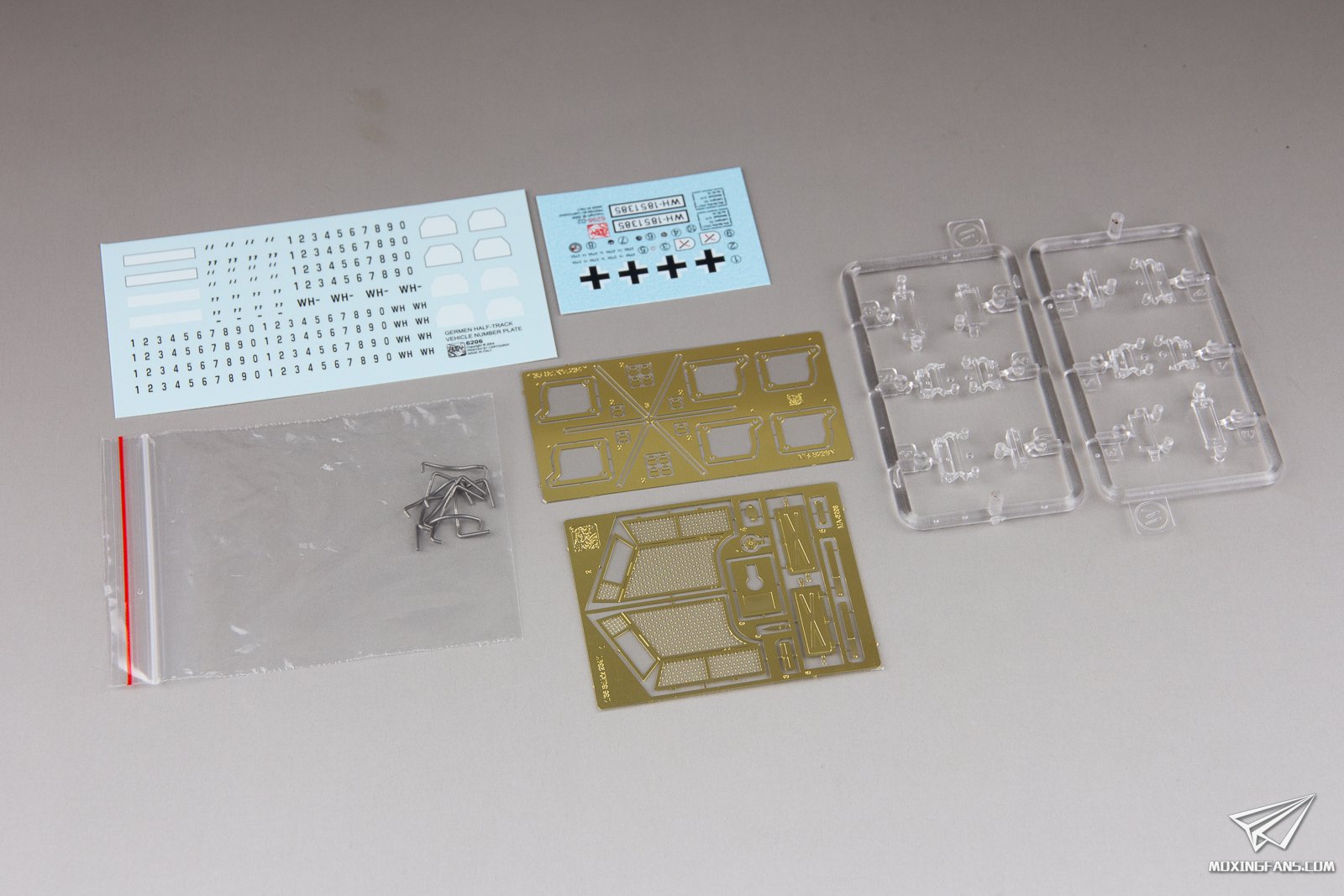 威龙的Sd.Kfz.234家族是威龙的轮式车辆代表作之一,其中Sd.Kfz.234/1型就是这个家族中的一员。这款车型的特点是安装了一个外形独特的六角形炮塔并装备了一门2cm KwK38 L/55型火炮和一挺MG42机枪,1944年6月至1945年1月共生产了200辆。 ▼ 威龙的这款新品Sd.Kfz.234/1是在以前推出的6289基础上新增了二代Sd.Kfz.234家族标配的可转向悬挂和三明治结构轮胎的部件重新包装而成,其余配置跟6289一致,配有2张蚀刻片。