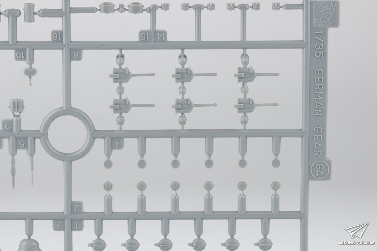 ▼ 其他零件的细节。这盒套件还附带了不少单兵装备,包括头盔,水壶,饭盒和铲子等,还能杀出一些不错的配件。