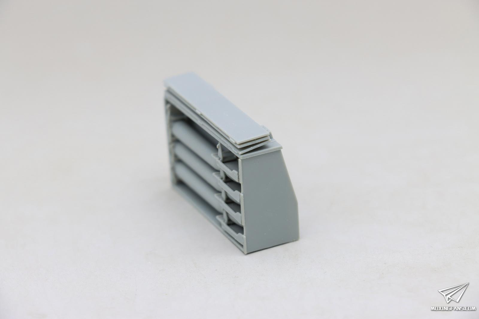 两侧的炮弹储存箱,分别是打开和关闭状态,最早这个是全蚀刻片化的,不知道是什么制作感觉,很想体验下。 因为威龙的炮弹零件有限,所以建议先将F4零件装在弹药箱里侧,然后在外侧安装细节效果更好的 F20 + F3 + F2 组合。