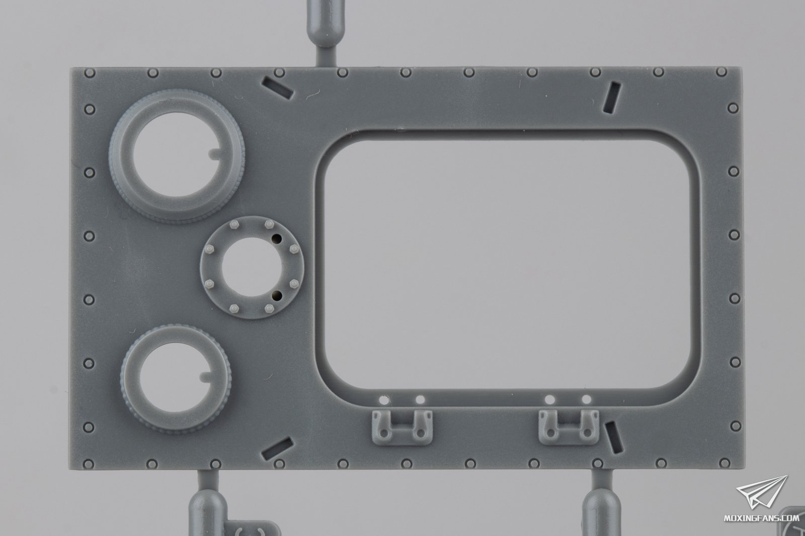 ▼ 车尾的储物箱也是这盒套件的卖点之一,其中无防磁的只有一款,有防磁的有普通版和战损版两款可选,其中战损版为软胶零件,造型非常生动。