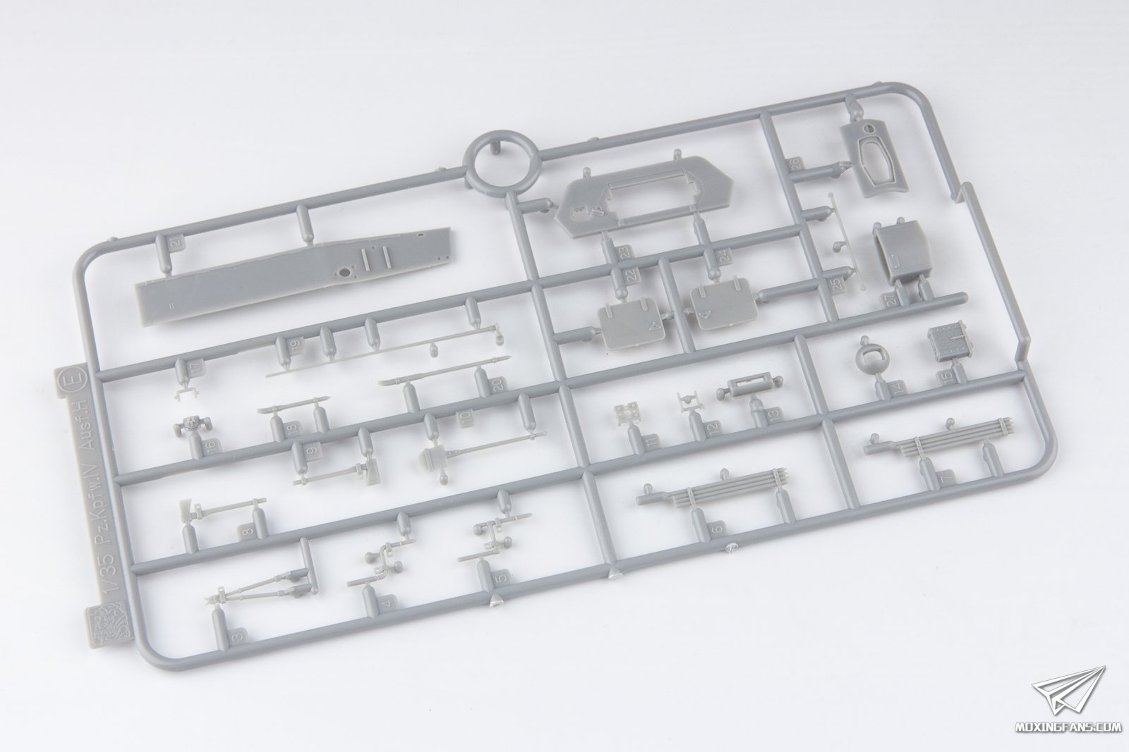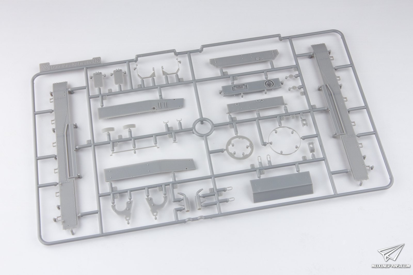 威龙的四号系列是第一批SK化的套件,在成功推出四号系列后针对四号坦克的衍生型号也推出了一系列产品,这款四歼L/70(A)最后期型就是在2013年推出的一款套件。这盒套件的定位和前段时间开盒的6689比较接近,两者最明显的区别就是这款最后期型使用了四号J后期型常见的三对托带轮,在结构方面进行了一定的简化。 ▼ 这盒套件为惠州生产,板件和配置方面跟6689也比较接近,配有魔术履带,蚀刻片,金属管子,预裁切的网状侧裙和一组乘员。