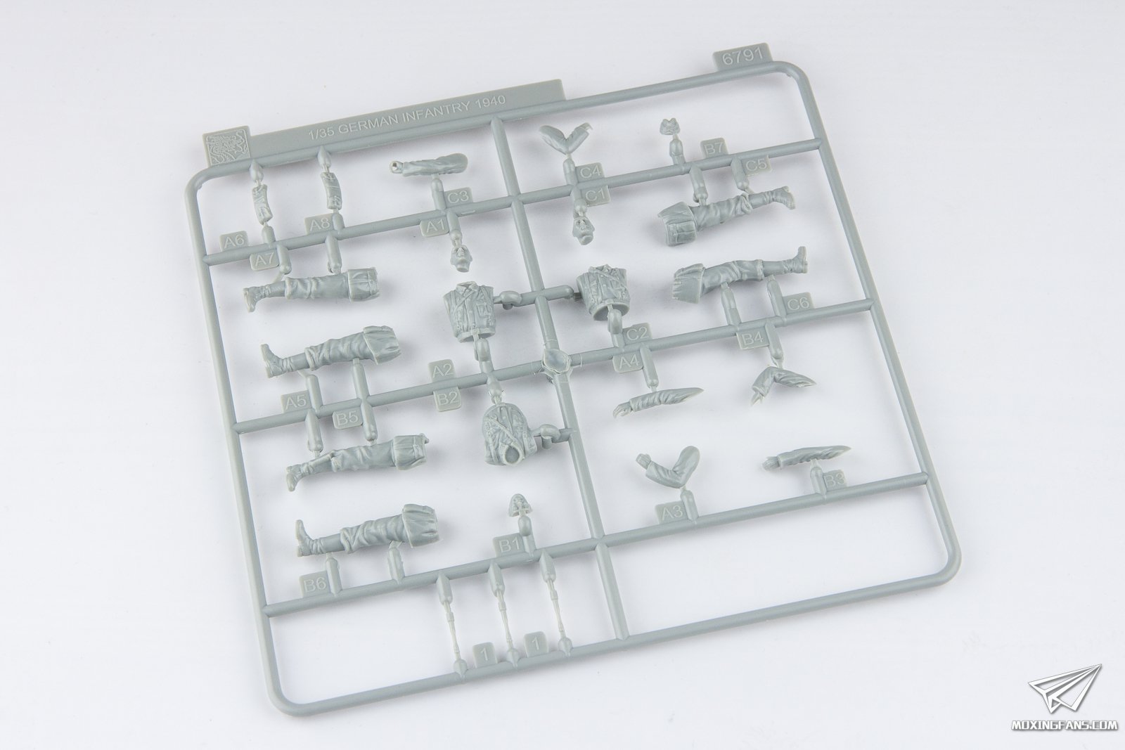 ▼ 人物是场景的灵魂,威龙在近20年间推出了大量人物模型,其中不乏精品。这盒6791是威龙在2016年推出的一款人形模型,不同于常见的4人组,这盒套件只有3人,也许是为了弥补少一人的尴尬,这盒套件在附带了大量武器装备的同时还附带了一板DS材质的衣物。