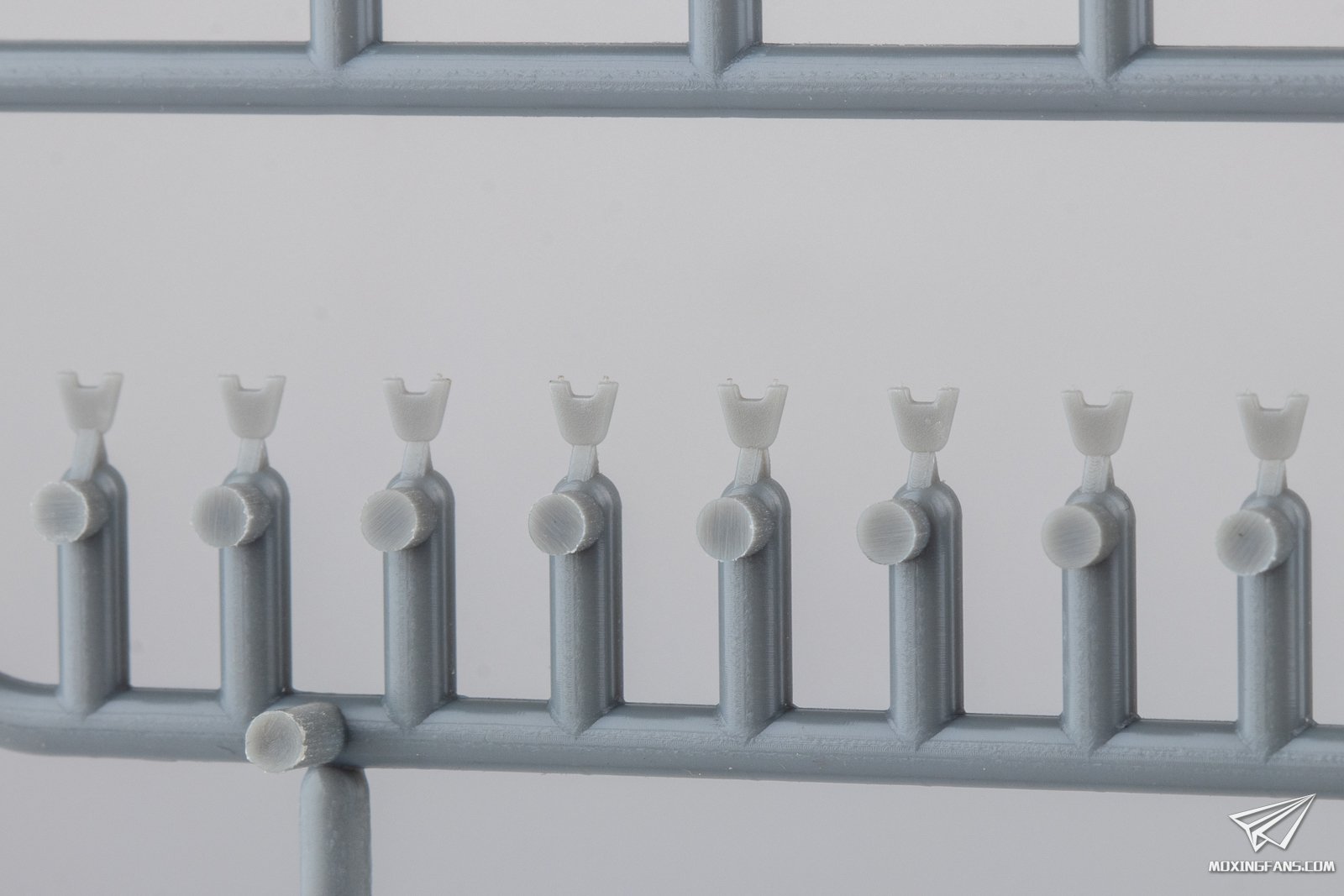 ▼ 履带方面标配的是威龙自家的魔术履带,诱导齿未镂空,附带的炮塔上面的备用履带则为拼接履带,诱导齿已镂空但是需要单独粘接。