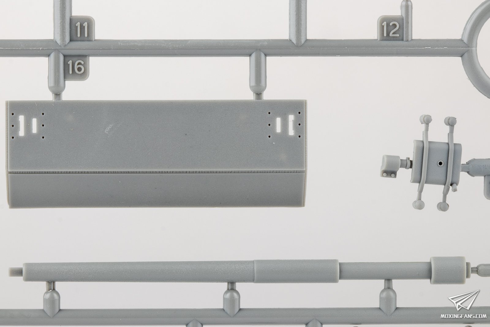 ▼ 上车体和车体其他零件的细节,各种舱门单独开模,表面的焊线和一字埋头螺栓细节非常细腻。