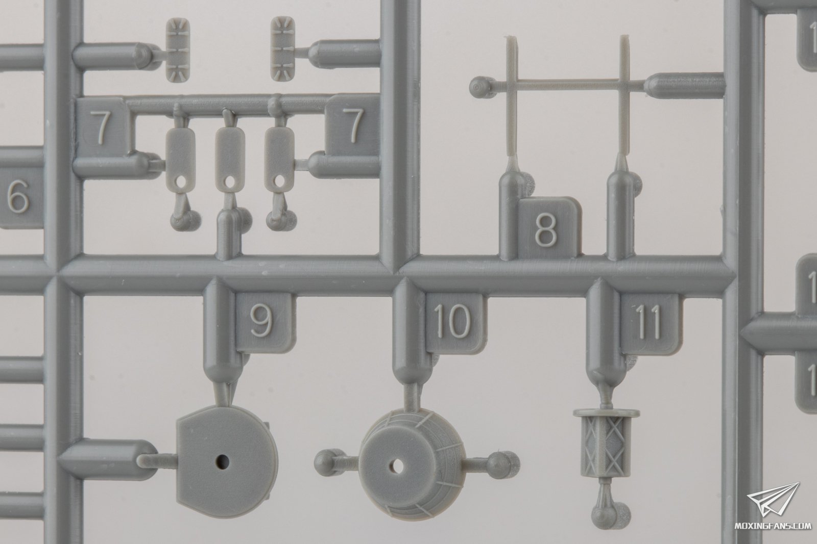 ▼ 双联装火炮和其他零件的细节。火炮炮塔为一体式开模,炮口已经镂空。