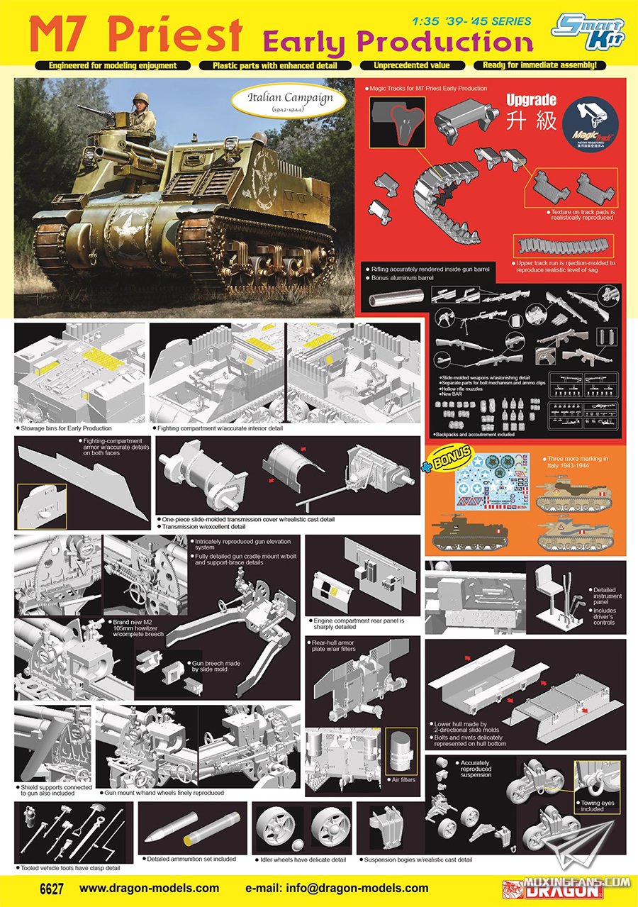 【威龙 6627】 美国 M7 牧师坦克早期型板件图和说明书