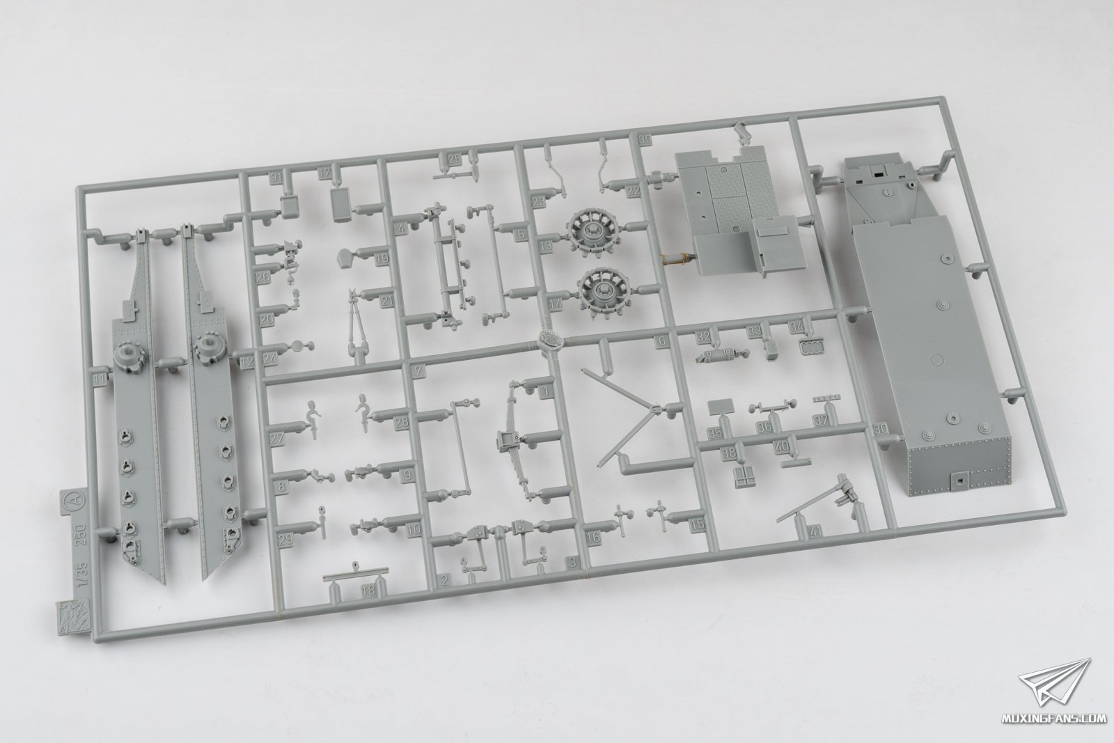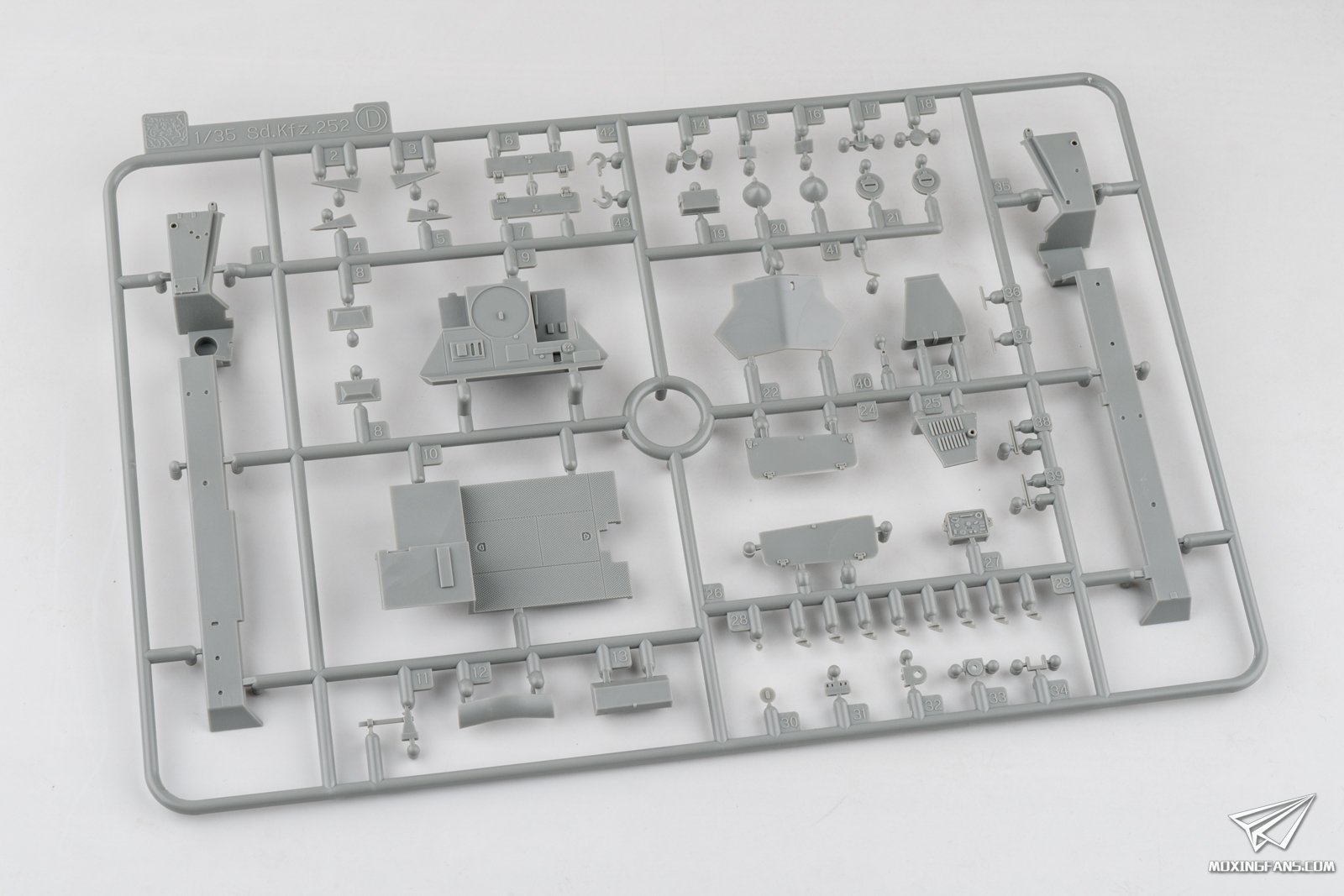 Sd.Kfz.253半履带车是Sd.Kfz.250的近亲,专用于突击炮部队承担前线观察任务。两者采用了相同的车体结构,鉴于Sd.Kfz.253恶劣的生存环境,所以改成了封闭战斗室结构,车顶设计有左右开合的舱盖,方便车长探身观察。 ▼ 这款Sd.Kfz.253半履带车使用了全新的货号,基础板件跟威龙在2000年前后推出的6140基本一致,但是在配置方面进行了升级,附带魔术履带,蚀刻片,金属示宽棒,3D打印零件和一组指挥官人形。