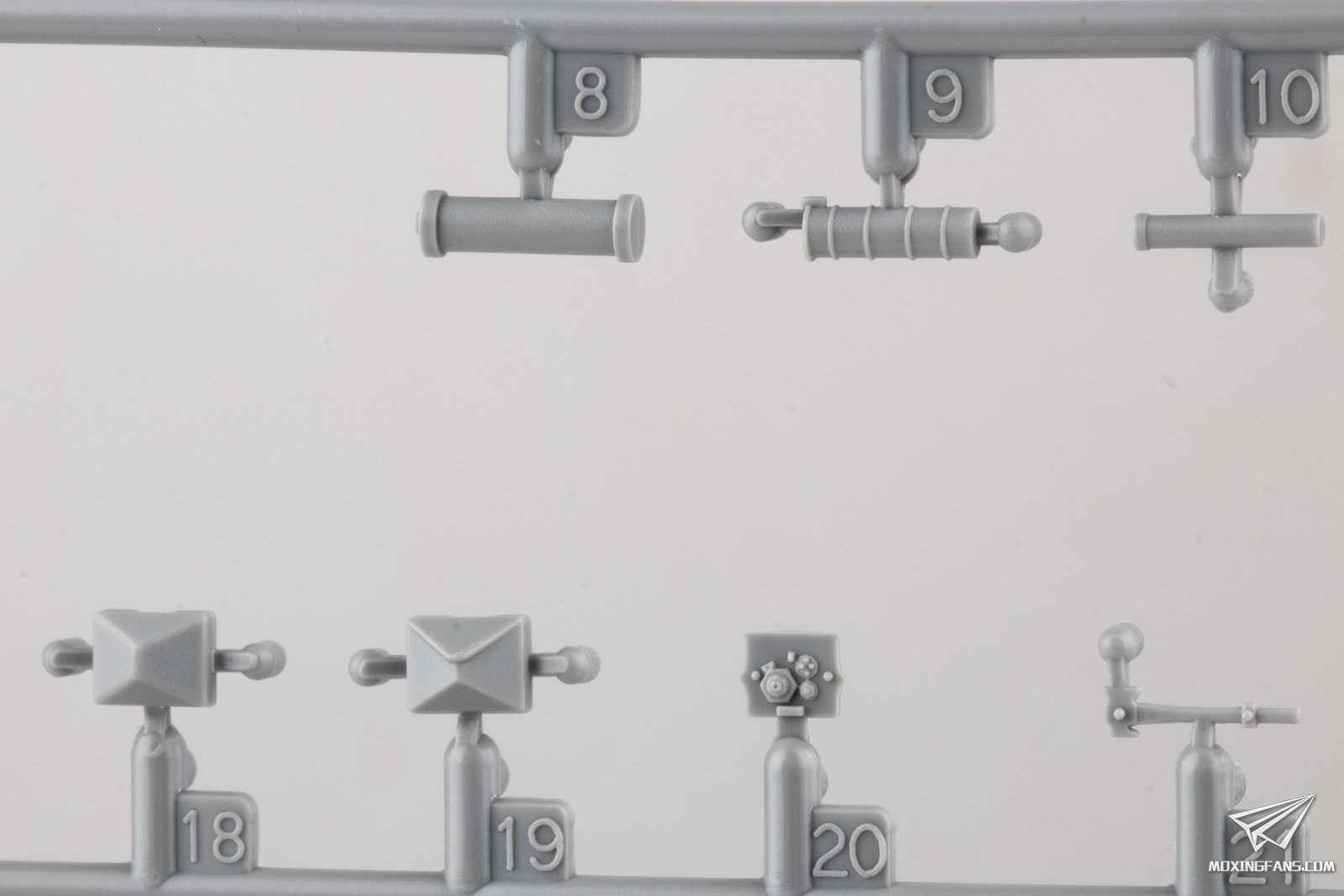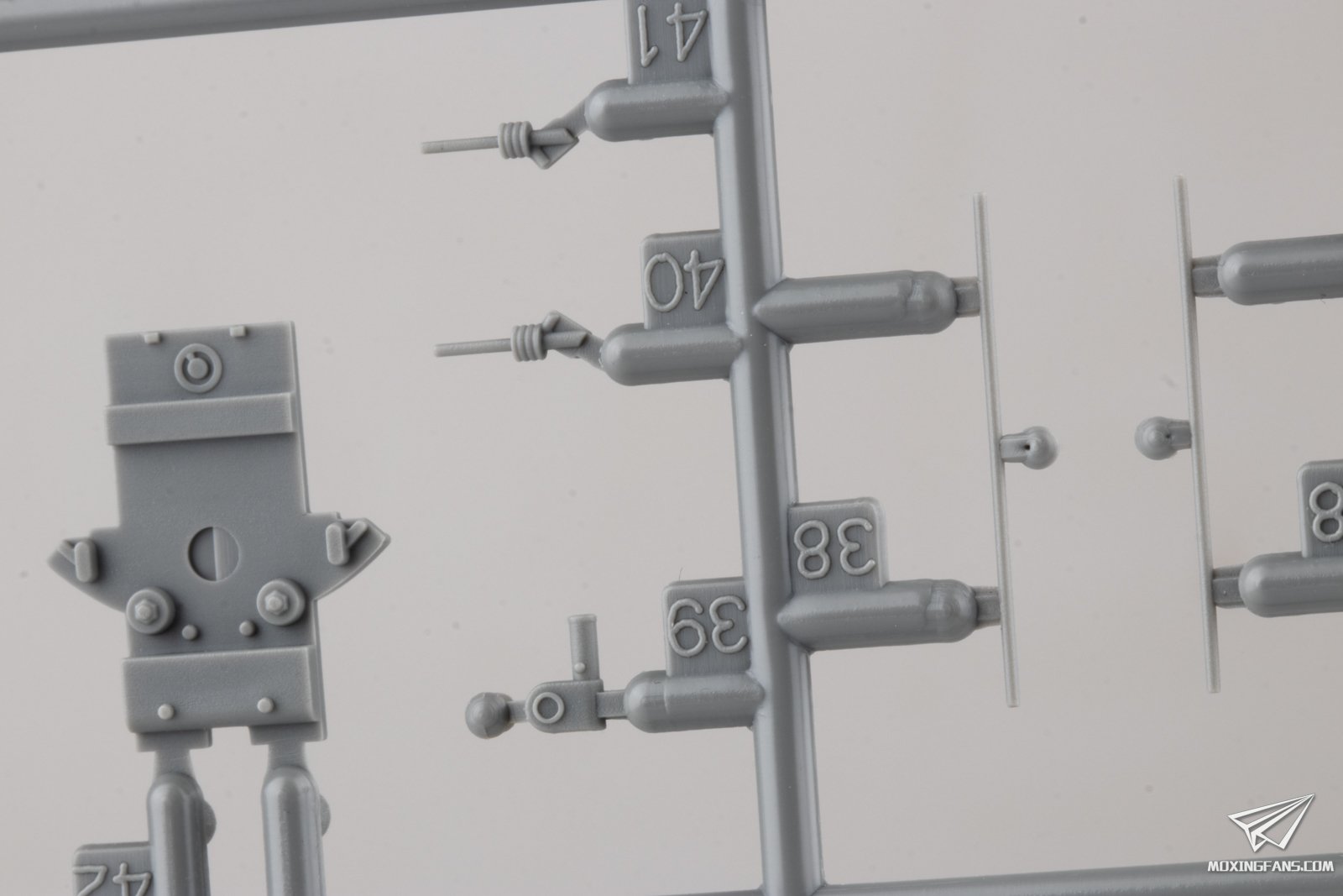 ▼ 火炮部分零件的细节。炮盾为一体式开出,表面开出了朝向各不相同的一字埋头螺丝的细节,火炮方面相信大家都比较熟悉了,还是那门75炮。