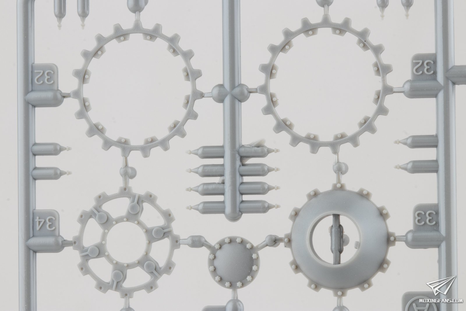 ▼ 轮子部分的开模方式也不同于常见的SK版,负重轮橡胶圈部分单独开模,主动轮和导向轮也提供了多种样式可选,锐利的六角螺栓和橡胶圈的文字细节属于威龙的正常发挥。