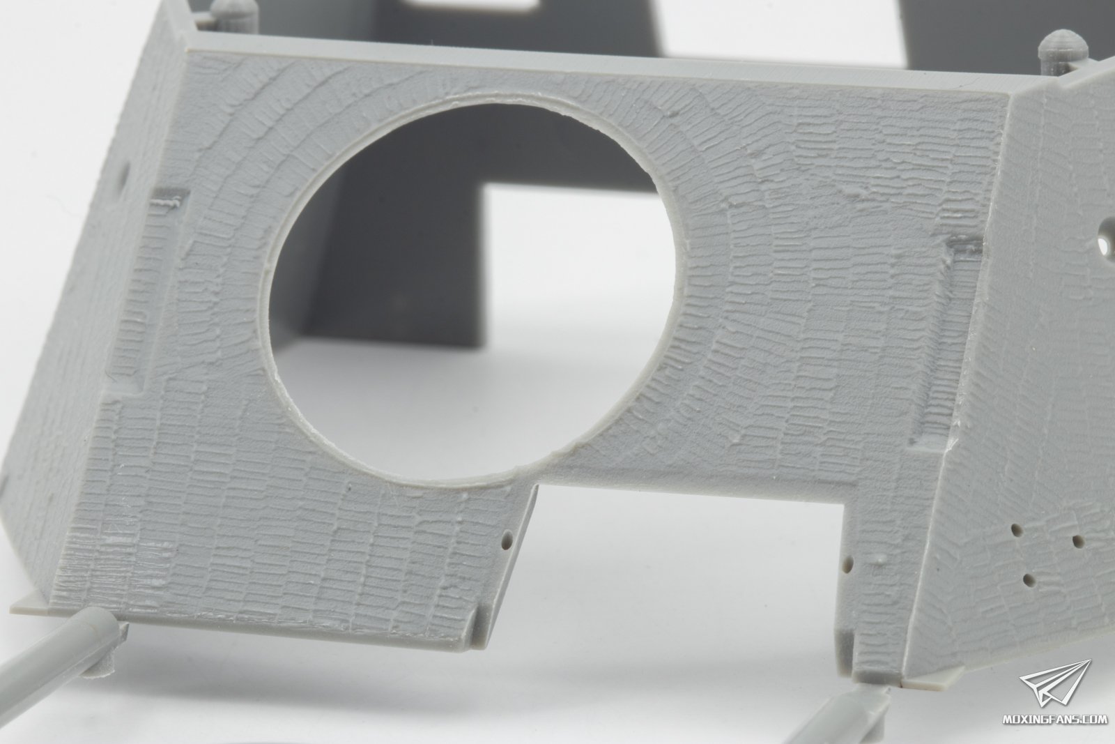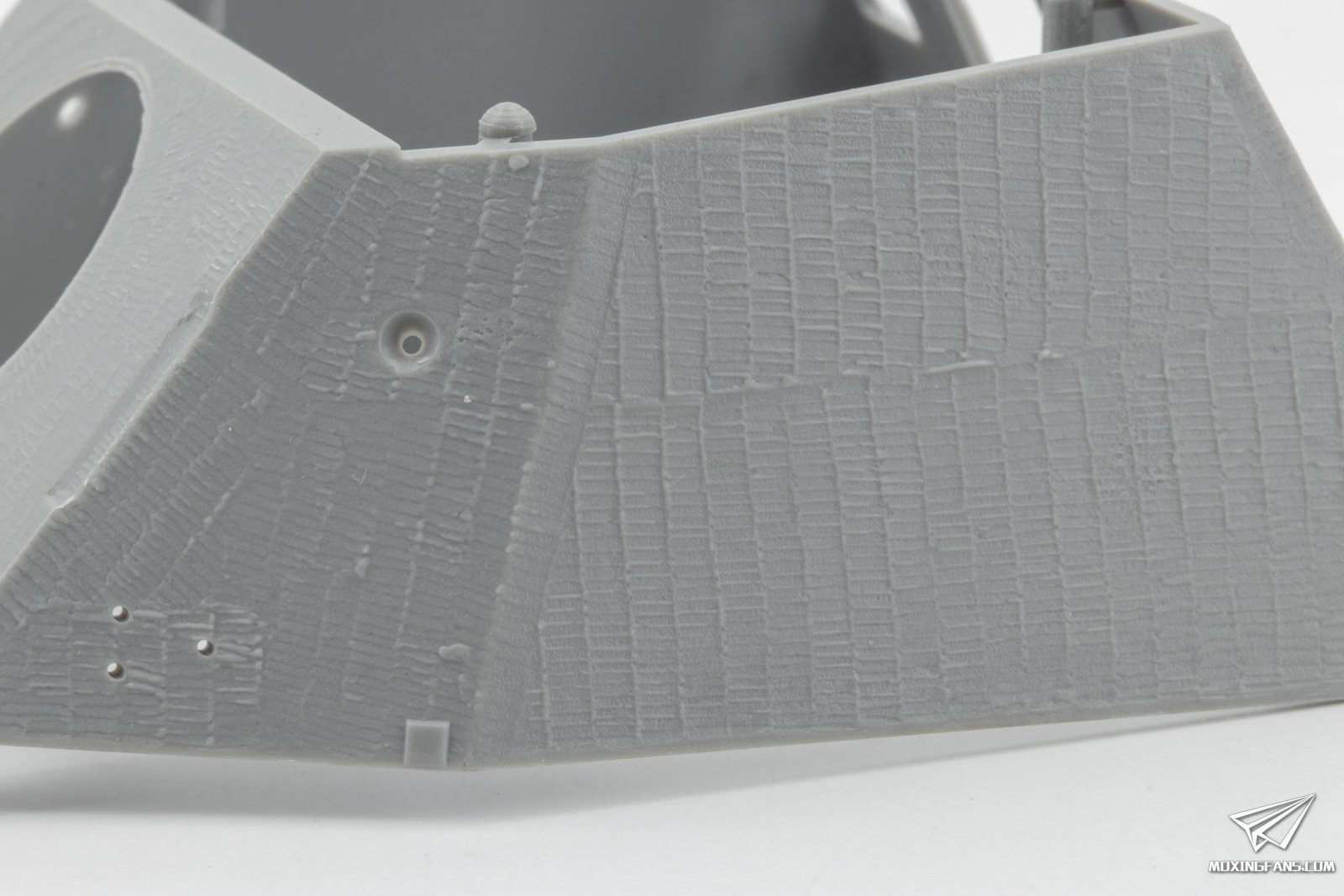 ▼ 防磁部分零件的细节,跟之前发布的中期型主要区别在于下车体采用了带有附加装甲的型号,战斗室前部驾驶室观察窗和虎式坦克类似,其余部分基本相同,防磁水平也表现一致,厚度较薄,也很逼真。