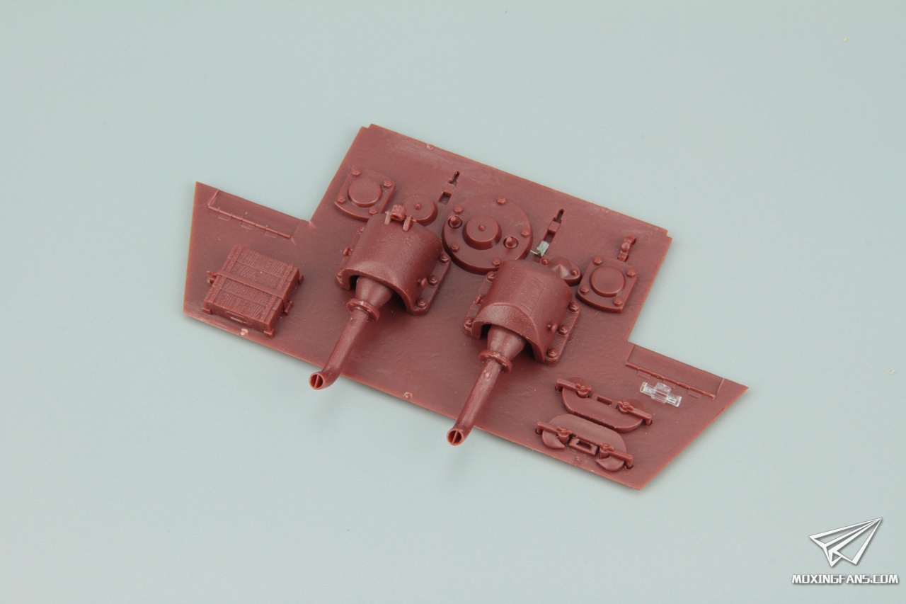 这块装甲板是通过卡槽结构卡在车体后部的,完全不需胶水固定。