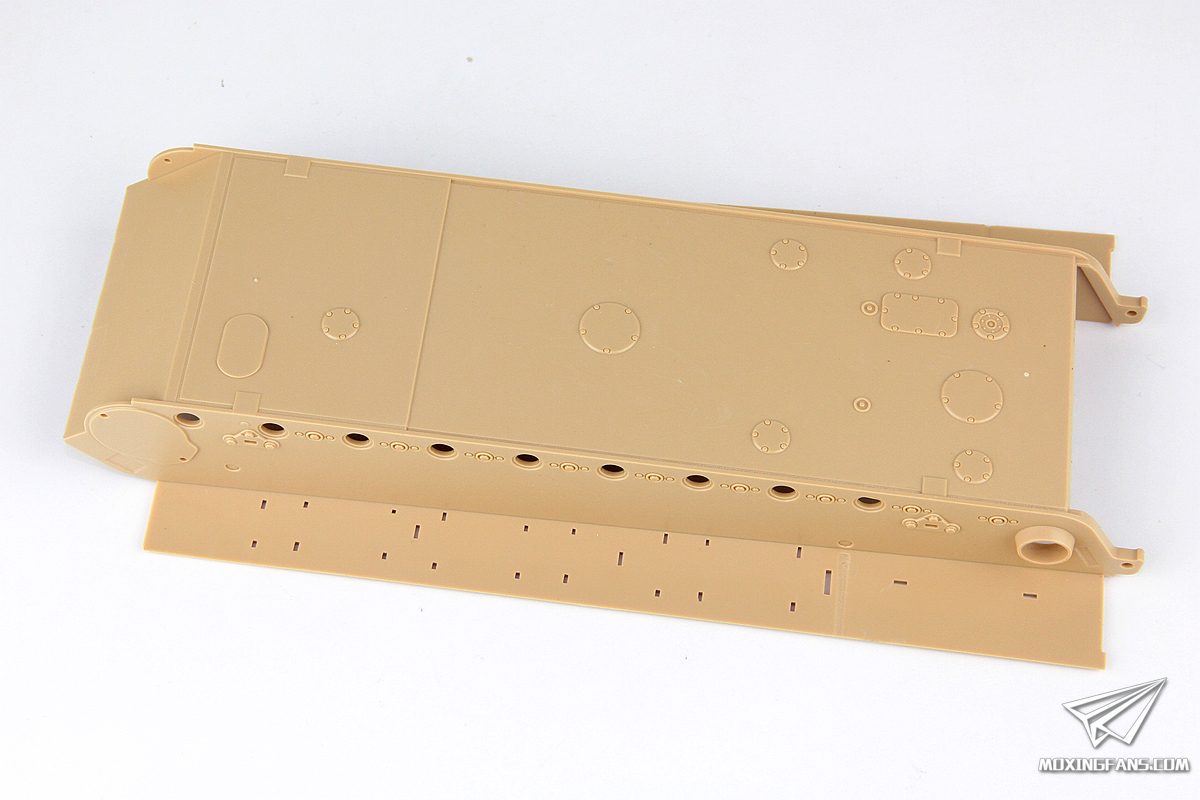 感谢MENG提供评测样品。本评测由静态模型爱好者发布,版权归属静态模型爱好者网站(moxingfans.com)版权所有,转载前请联系站长获得许可。 德国重型坦克“虎王”(保时捷炮塔型)是“虎王”的最初版本。该车底盘与常见的“亨舍尔炮塔型”一致,但是搭载了一个克虏伯公司为保时捷重型坦克原型车VK4501(P)设计的炮塔,故被称为“保时捷炮塔型”。当时保时捷重型坦克项目已经被取消,但是克虏伯公司已经为该项目生产了多达50个炮塔,为了不浪费资源,就被搭载在被称为“虎B”或“虎II”的VK4503底盘上。 “虎王”于1944年7月在卡昂附加首次参战,带给盟军极大震撼。装备该车的德国国防军第503重装甲营于1944年7月11日投入作战。首次参战的是该营的3连。当时配属给第21装甲师第22团的该部受命向卡昂移动被加拿大军队占领的科隆贝莱发动反击,当天击毁11辆“谢尔曼”,并缴获2辆。英军在最初的战报中将该车误以为是新型“黑豹”,对其厚重装甲带来的出色生存性表示惊讶。盟军士兵为这个他们尚不知称谓的德国怪兽取名“虎王”,这一日后如雷贯耳的大名很快就不胫而走,成为了盟军最恐怖的记忆之一。 在推出了虎王坦克(亨舍尔炮塔)之后,MENG在今年又预告了这款虎王坦克(保时捷炮塔)。不同于亨舍尔的方正霸气,保时捷炮塔所特有的如同跑车一般的流线型带来的更多是科技感和浪漫感,其优雅的炮塔结构让人一眼就无法忘记。那么这盒保时捷炮塔的虎王究竟开的如何呢? ▼ 板件数量和之前推出的亨舍尔型虎王大致相同,只是新开了炮塔部分及一点配件,配置方面同样给出了半拼接履带,金属炮管和蚀刻片。