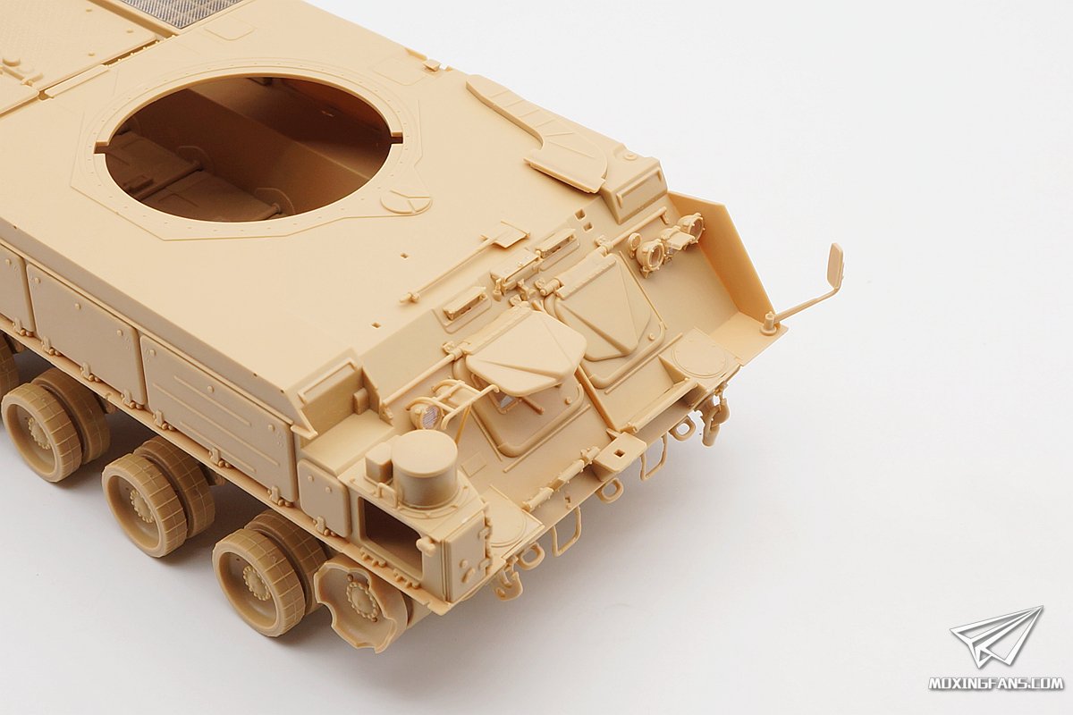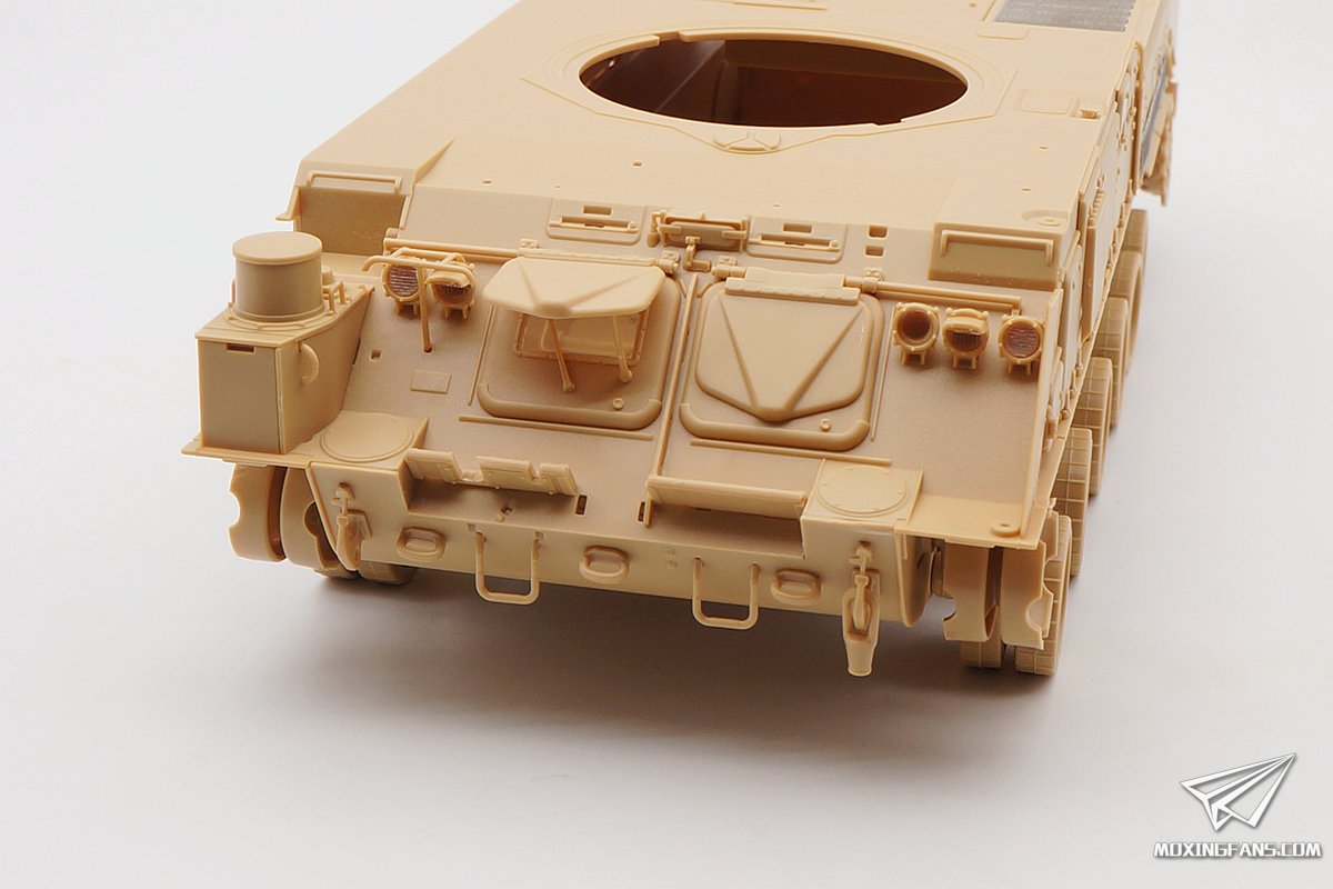 尾部的零件不多,几个舱门和备用履带还有工具,都开得十分到位。