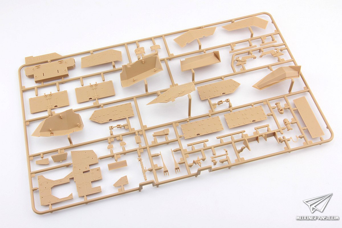 那些被强敌环伺的一隅小国似乎总能爆发出与其体量不相称的战斗力,以色列就是其中之一。以色列人的精明闻名于世,他们总能将手中的资源发挥到极致。M48和M60“巴顿”坦克随着战争来到以色列,其中有缴获自约旦陆军的,也有来自联邦德国和美国的。尽管型号繁多面且在战场上暴露了诸多缺陷,但是以色列人照单全收将它们统称为“马加齐”。“马加齐”6、7指的是M60车族,其中“马加齐”6B是M60A1E2的以色列名字。与其他外国战车一样,以色列对手中的易60A1E2也做了很多改进。除了常见更换FN M NM机枪、在主炮上方加装更实用的M2HB重机枪之外,为了应对长期以来部队对M48M60坦克防护性能的诟病,以军为它加装了重型附加装甲,并换装了908匹马力的发动机。80年代,以色列开始用“梅卡瓦”主战坦克逐步代替手中的“肖特”和“马加齐”,但是依然有不少马加齐” 服役至21世纪。在服役生涯的末尾, 对“马加齐”的改进依然没有停止。 这其中“马加齐”6B GAL BATASH特殊的名称非常显眼。这款战车名字中的GAL是一款以色列火控系统的名字,而BATASH 则是希伯来语“日常治安任务”的缩写。显而易见,这款本被设计用于与苏联装甲集群在西欧作战的坦克,经过以色列人的妙手,现在被用在了中东低烈度的治安战中。这款坦克数量非常稀少,加之以军保密措施严格,时常会被误认为马加齐”7或者“马加齐”8,作为坦克使用的“马加齐”在2006年全部退出现役,而其底盘现在仍然在以色列军中效力。 马加奇6B这个题材可谓是一个非常另类的题材,基于M60底盘的她身世复杂,外形凶悍,在以色列粉丝们的心中有着特殊的地位。这个题材的套件之前爱德美推出过,但是凭借着最新的考证和开模技术,MENG在推出这盒套件的时候还是底气十足的,那么我们就来看看这盒套件究竟开的如何。 ▼ 首先是板件预览,开盒的时候还是吓了小编一跳的,满满一大盒的套件,几乎要盖不上盖子。零件为沙黄色PS塑料,开模较为锐利。配置方面较为丰富,给出了扭杆活动悬挂和销钉活动履带,软胶材质的火炮防雨布和根部保护套,以及蚀刻片和金属钢缆等。