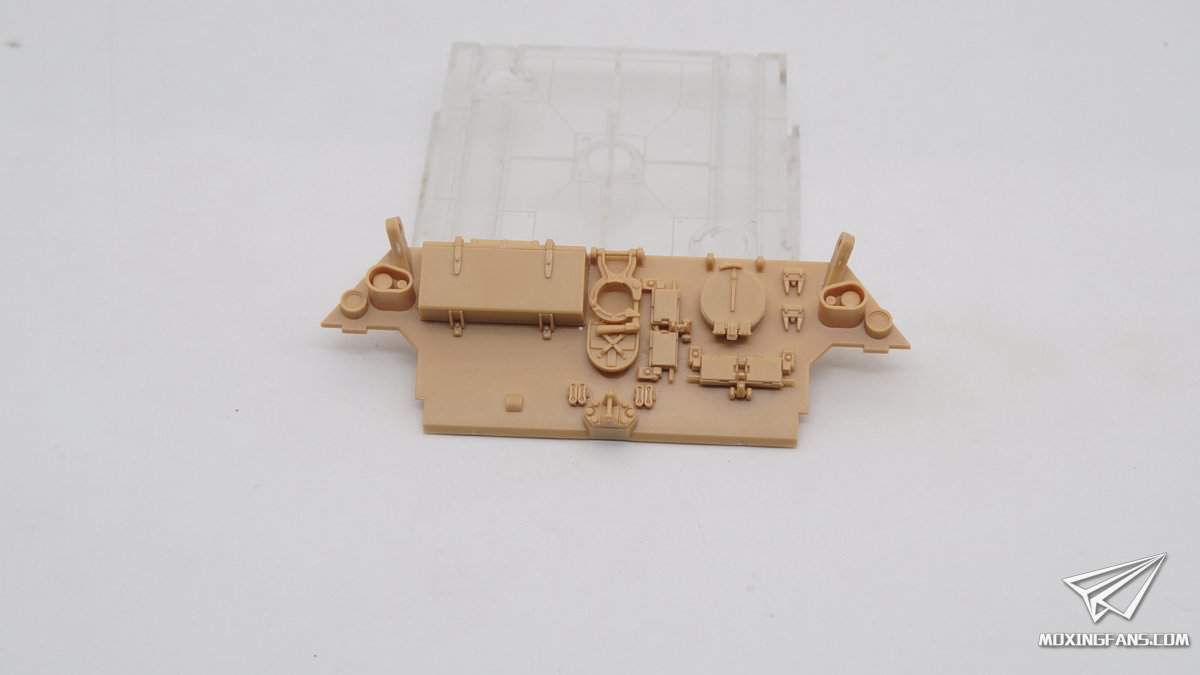 车体上盖两侧的附加装甲固定基座注意粘合位置不要粘错。