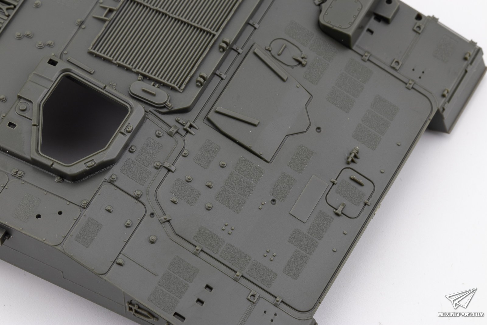 ▼ 车体和炮塔都开出了非常细腻的防滑纹和焊线,单凭这一点就大大超越了利华的同款,奠定了MENG的PZH2000的决定版地位。