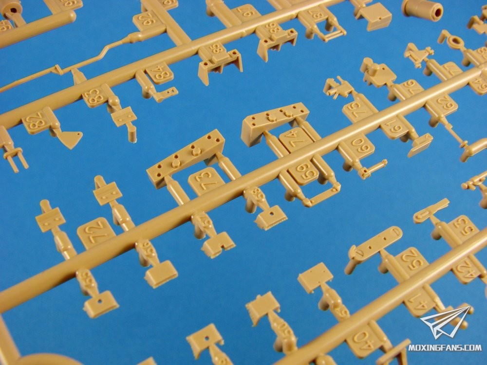 近些年以来,全内构模型逐渐成为了模型行业内的一个热门话题。随着开模技术的进步,考证资料的积累,越来越多的厂家开始小心翼翼的涉足之前不敢企及的全内构题材套件。去年就有2家国内厂家先后宣布了自家的全内构豹式坦克,其中就有麦田模型(RYE FIELD MODEL)的这盒全内构的豹G,而且作为麦田的3周年纪念系列,这盒套件还附带了方便展示内构的透明炮塔和透明车体,更是激起了模友们的兴趣。 遗憾的是,这盒套件国内还没有铺货,小编搬运并简单翻译了一篇来自国外的评测,让模友们在除夕夜除去观看无聊的春晚以外还能摄取到一点点营养,才疏学浅有翻译错误的地方还请模友们多包含。原文链接:https://forum.largescalemodeller.com/topic/5377-135-panther-ausfg-%E2%80%98earlylate-with-full-interior%E2%80%99/ 前面的对实车的介绍小编就省略掉了,直接上干货。 A板 麦田模型的这盒豹G在板件的排列方面做的很有趣,尽可能的把相近的零件排列在一起。这板零件最主要的就是那门强大的7.5cm Kwk 42 L/70火炮,火炮防盾及指挥塔等炮塔相关的配件了。火炮防盾给出了2种,分别时没有下巴的早期型和带有下巴的晚期型,都开出了不错的铸造纹理。有些人可能会抱怨没有金属炮管,其实这盒套件给出了一体成型的塑料炮管,制退器也时一体开模,还有蚀刻片作为补充,细节并不差。