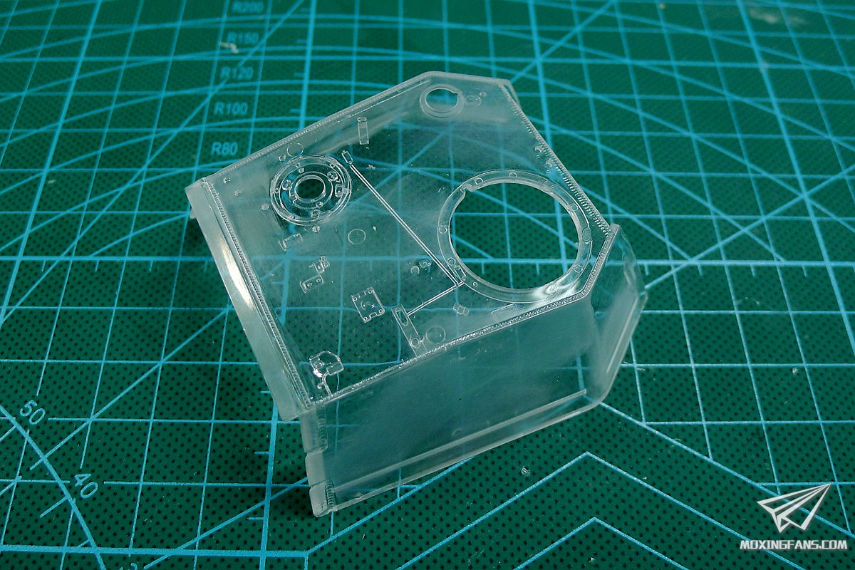 最后抛光之后的效果,单独的可能漏拍了,就在这里看一下吧。其实我一度觉得这套东西就做成这样的透明素组展示,效果应该也是极好的。(炮盾顶部的两个推出孔非常显眼)
