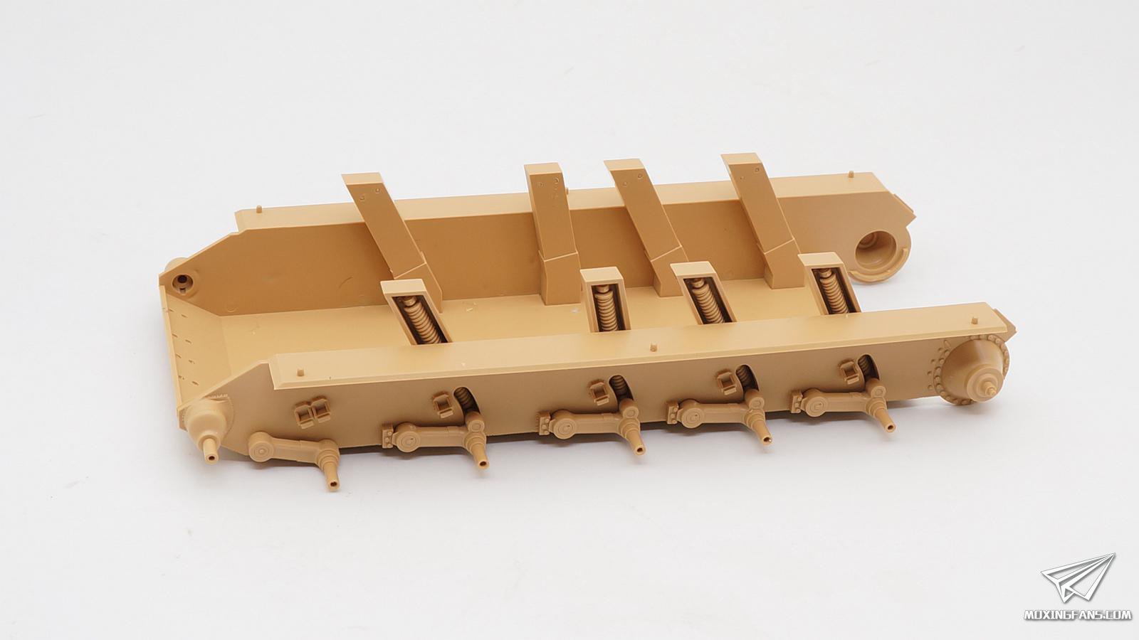 底盘部分和之前发售的产品麦田5013 埃及T-34-122火炮基本一致,制作起来也是十分友好。弹簧部分由于基本缩在里面看不见,所以对于合模线这块不要太多的处理。