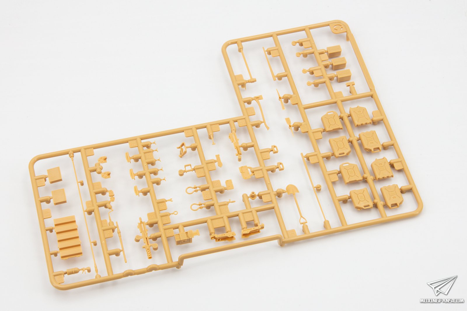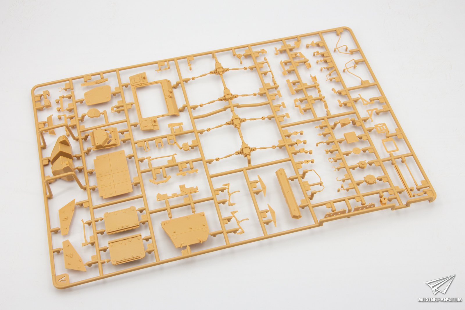 今年8月份麦田预告了这款M1128斯崔克机动火炮系统,凭借火爆的题材迅速成为了模友们期待的一款套件,今天咱们就一起来看一下这盒套件表现如何。 ▼ 板件为黄色PS塑料,采用活动悬挂设计,附带蚀刻片,软胶轮胎和3D打印炮管。