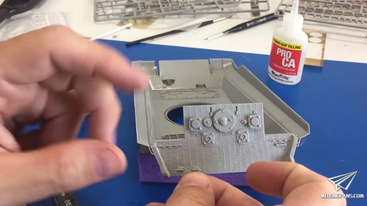 【三花 2047】1/35全内构虎王坦克亨舍尔型防磁装甲制作视频PART3
