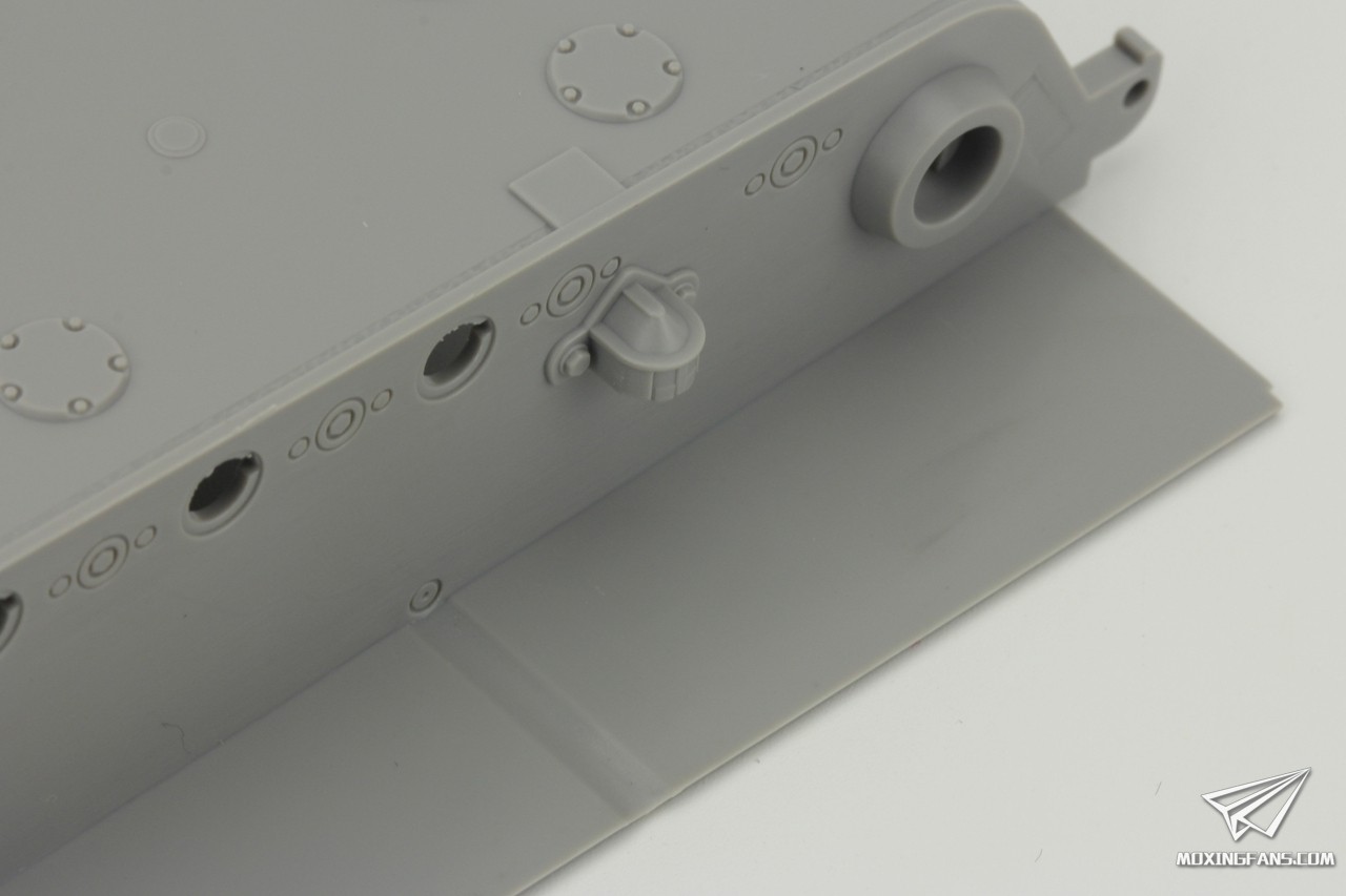 ▼ 炮塔的顶部装甲为单独开模,我们一起来看下焊线和切割痕表现。
