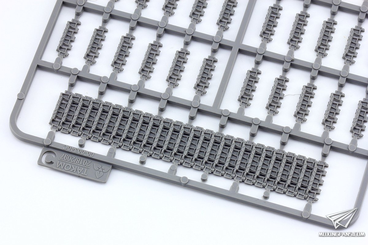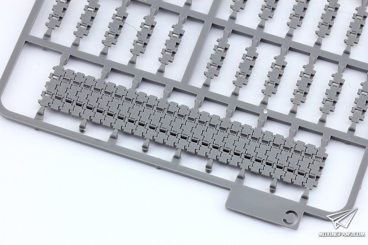 ▼ 履带方面依旧给出的半拼接履带,诱导齿为单独粘接,样式依旧是常见的带有防滑齿的型号,为1943年9月开始使用的履带。