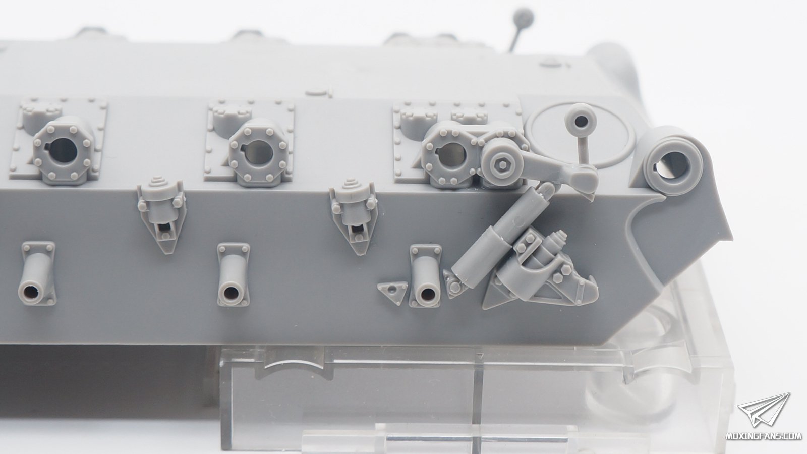整体悬挂部分就制作完毕,零件细节还是很锐利的,铆钉细节突出。