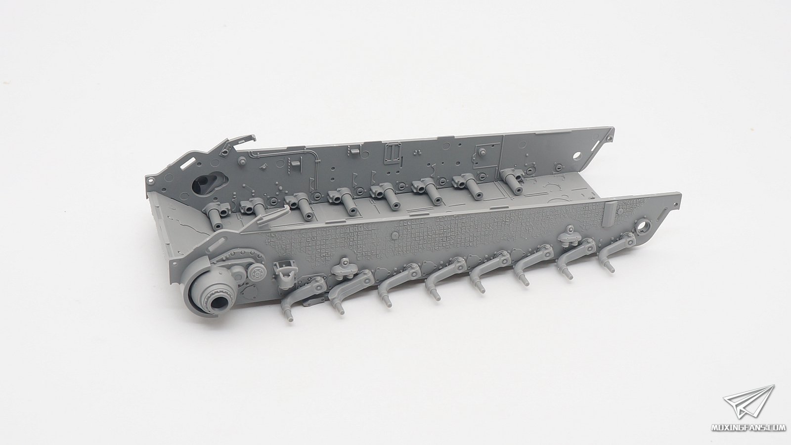 履带齿需要单独粘合,但是比较人性化的是,履带齿都有辅助流道帮助定位。