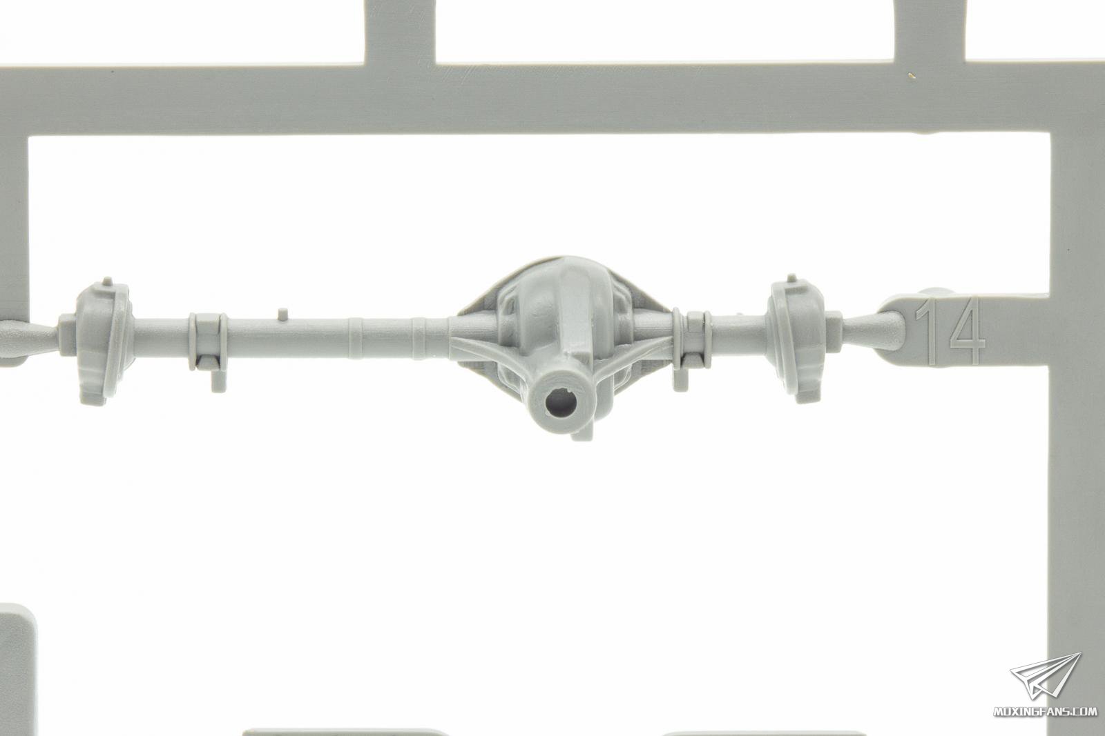 ▼ 前轮和后轮的细节。都是射出件零件,表面的细节表现的还是不错的,螺栓清晰锐利,除了没有重力感基本找不到替换它的理由。