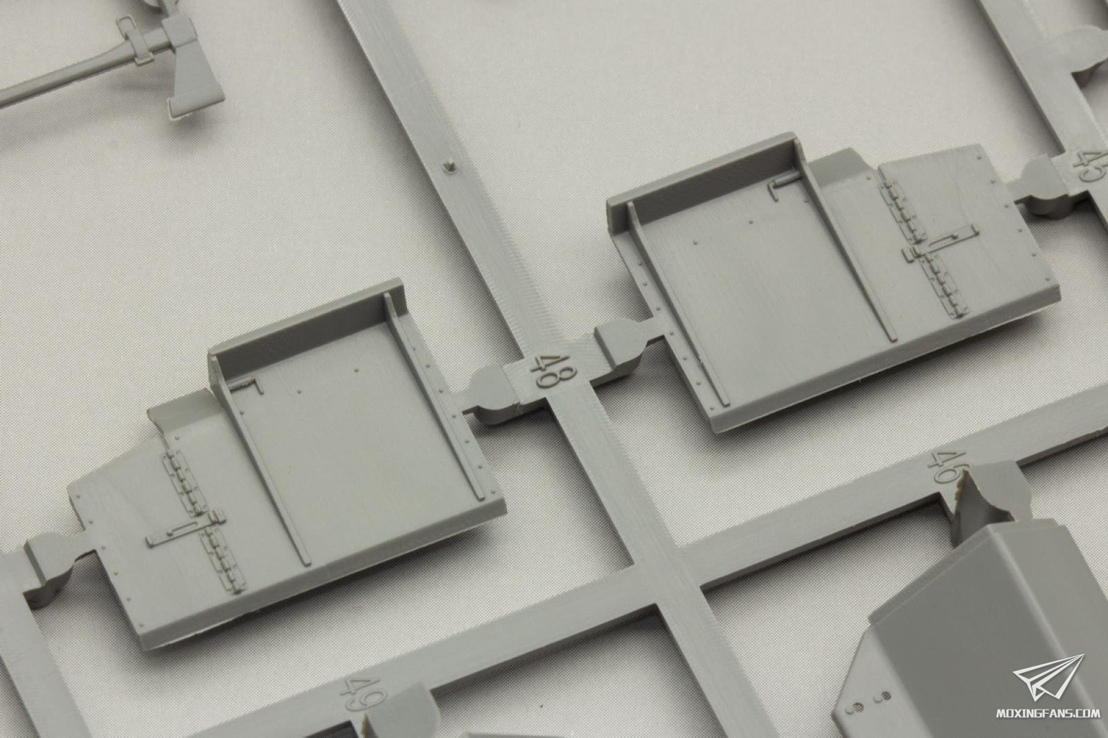 ▼ 战斗室尾部的舱门开出了2层的结构,同时还给出了锁止结构,做成开启状态也不会一眼穿帮。潜望镜为射出件,而非透明件,有些遗憾。