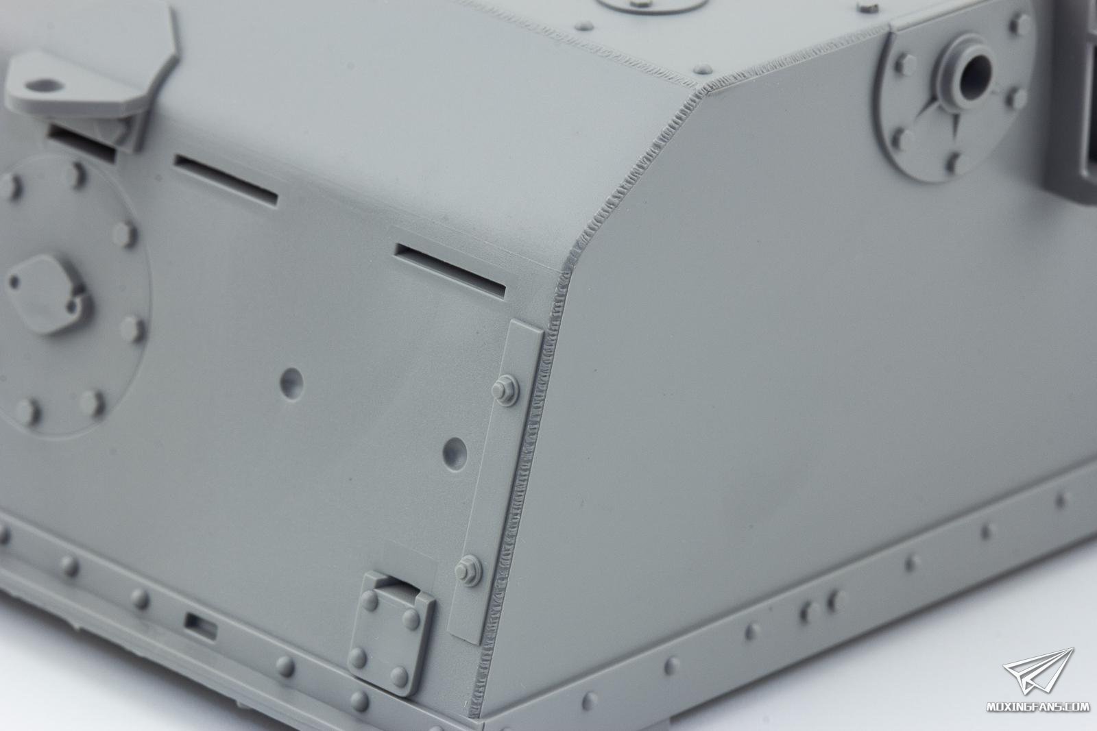 ▼ 因为是焊接结构,焊线的细节就比较重要了。因为一号坦克的装甲比较薄,所以焊线也比较细小,放在1/35比例上因为技术的限制可能会显得有些夸张,但是放在1/16比例上就完全没有这个问题了。从三花的这盒一号坦克来看,表现的焊线表现的非常细腻,六角螺栓和埋头螺栓的表现也非常锐利,看上去就有制作的欲望。