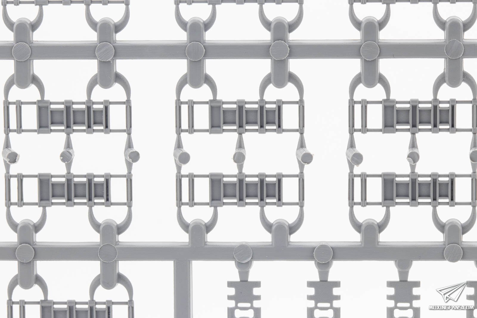 ▼ 履带为活动履带设计,水口控制的不错,部分履带板可见轻微突出表面的推出孔。