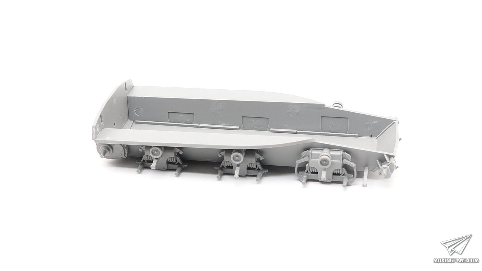 底盘组合度良好,四片拼接但是定位准确,底盘底部两侧接缝处最好能用补土处理一下细缝,如果不讲究的不处理反正也是看不见。