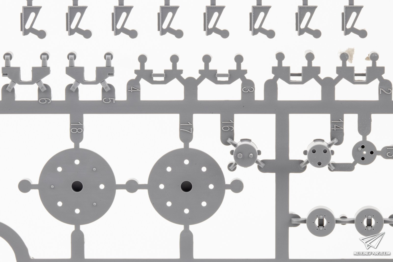 ▼ 首先来看新车体和开模的部分。车体开模一体化程度较高,发动机防爆网一体式开出,细节方面中规中矩,焊线表现的较为一般,仅有的几块防滑纹较为细腻,相信渍洗以后会有不错的表现。新开的零件表现的较为锐利,虽然零件数量不多但是像是焊线和细小的螺栓表现的都不错,一些零件采用了滑块开模方式,合模线控制的较好。